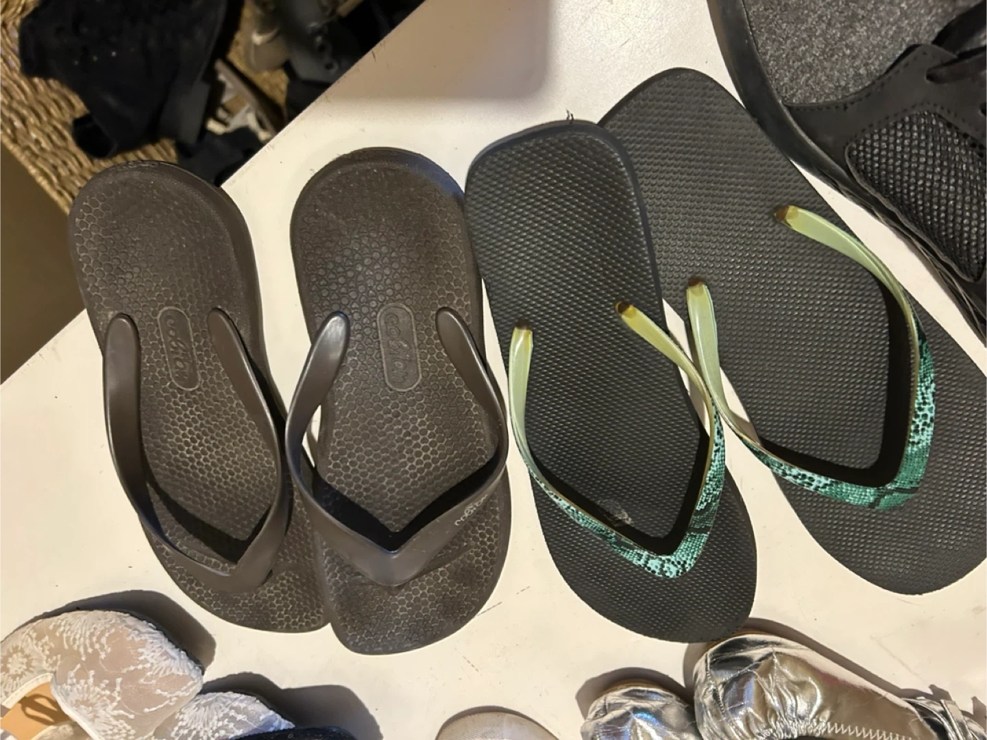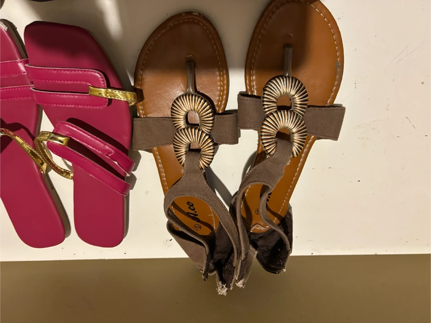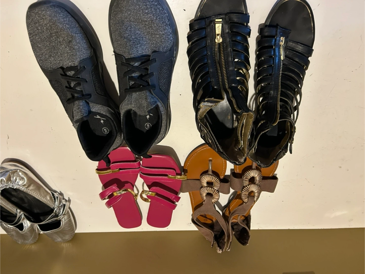 Selling a variety of women's shoes. There are sandals, flats, and sneakers in assorted colours. Sizes range from 9-10 Please see photos for condition!