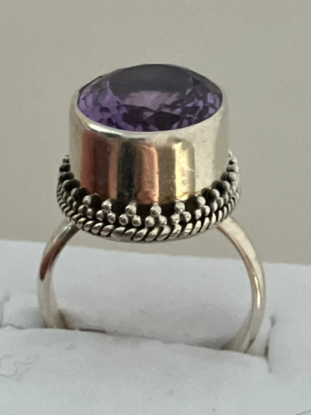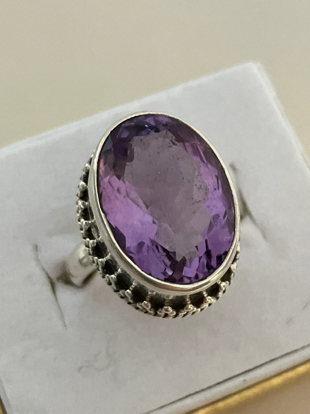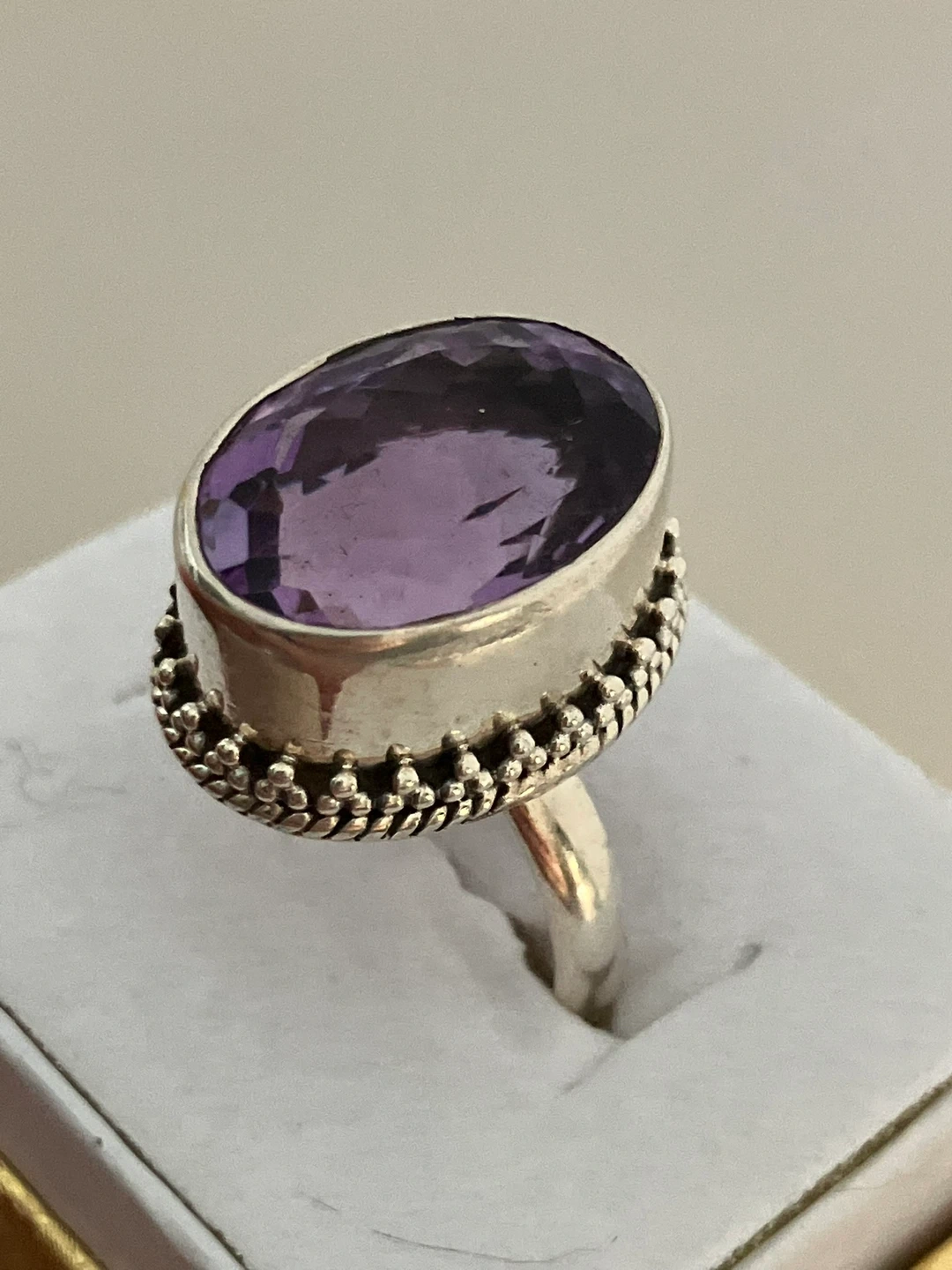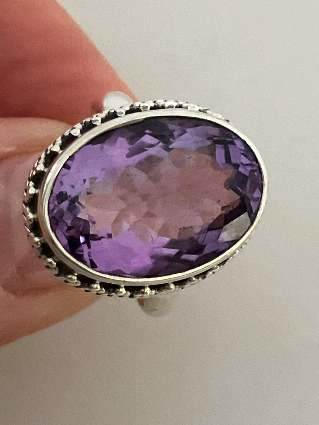 Amethyst, 925 Sterling Silver Ring, Size 7