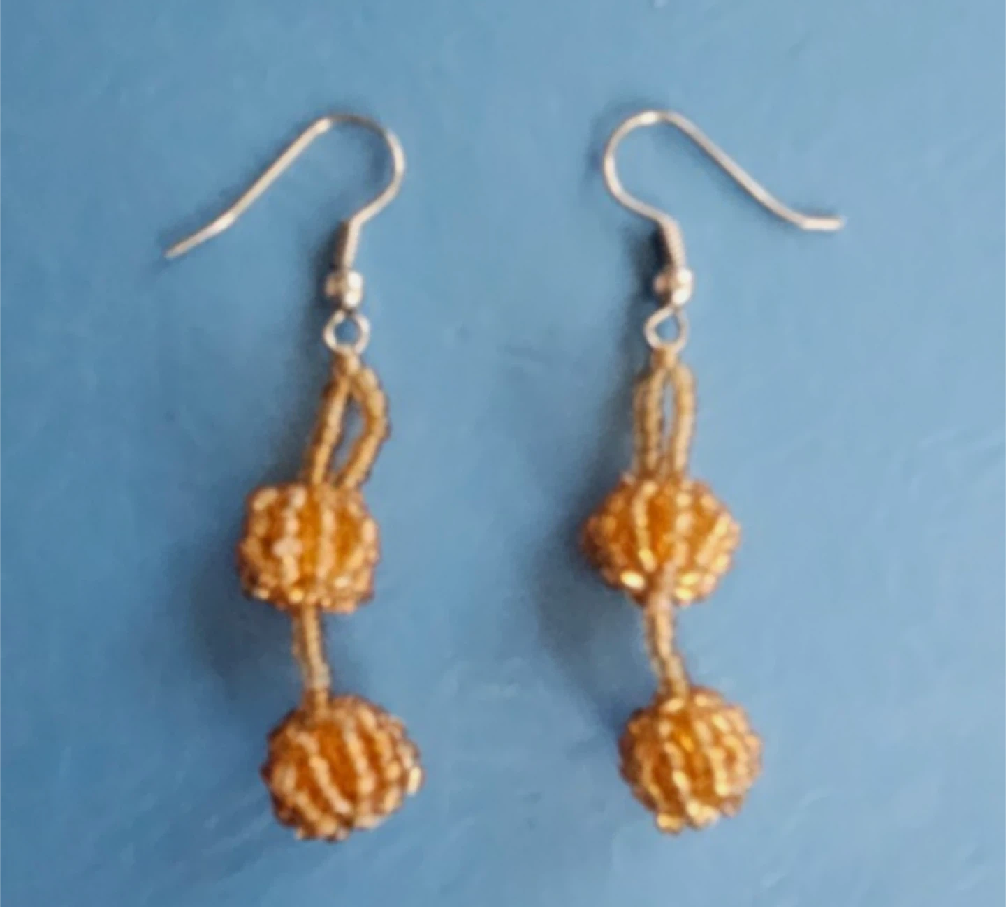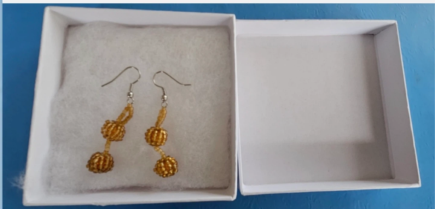 These handmade yellow beaded drop earrings feature a round shape and are lightweight, making them perfect for everyday wear. The vibrant yellow color and vintage style add a pop of color to any outfit, making them a great choice for occasions like Mother's Day or birthdays. The 2" length and lobe ear area make them easy to wear and comfortable to wear for extended periods of time. These earrings are a unique and colorful addition to any jewelry collection. These earrings are meticulously crafted from tiny seed beads, finished with classic fishhook ear wires. These earrings have been in my jewelry box for many years. They have never been worn.
