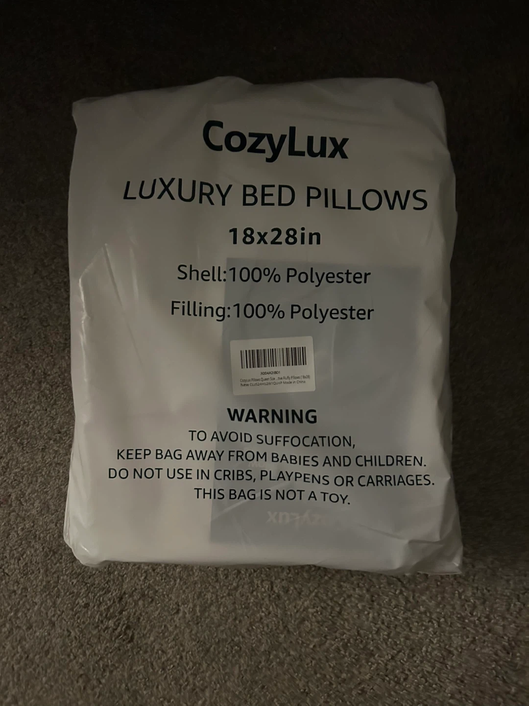 Selling a brand new set of CozyLux Luxury Bed Pillows! They are queen size and measure 18x28 inches. The shell and filling are both 100% polyester. They're still in the original packaging!