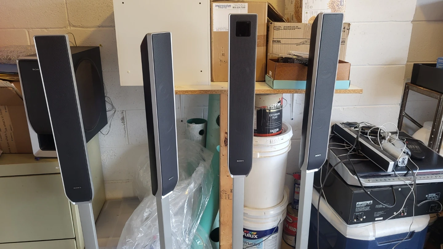 Selling a Sony home theatre speaker system. It includes multiple speakers and a receiver. Great for setting up a home entertainment system!