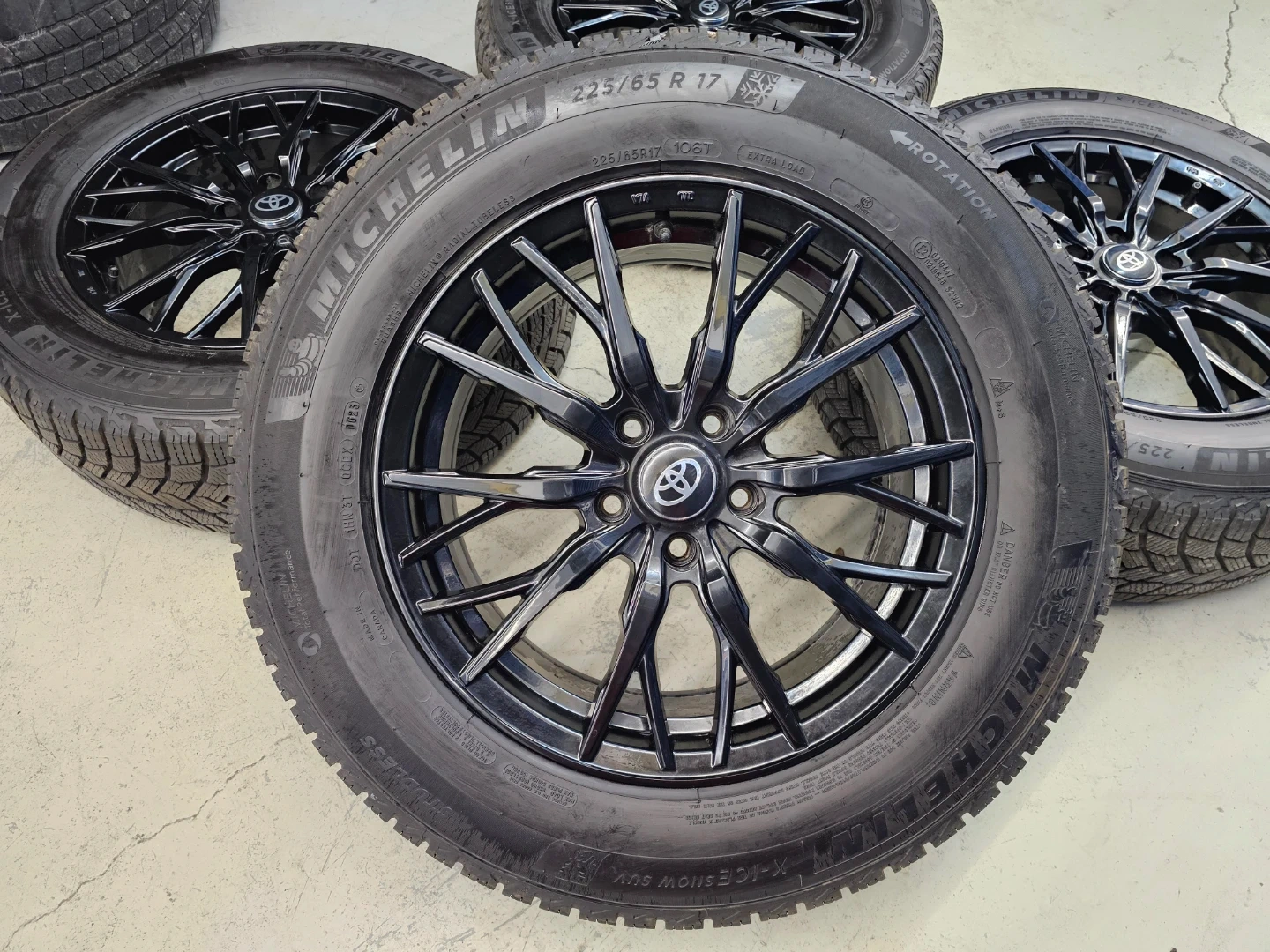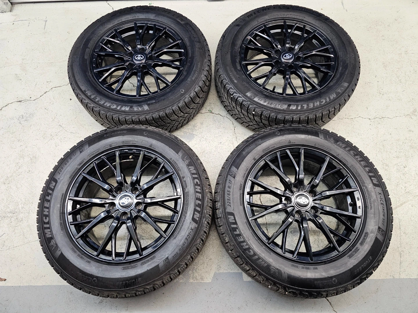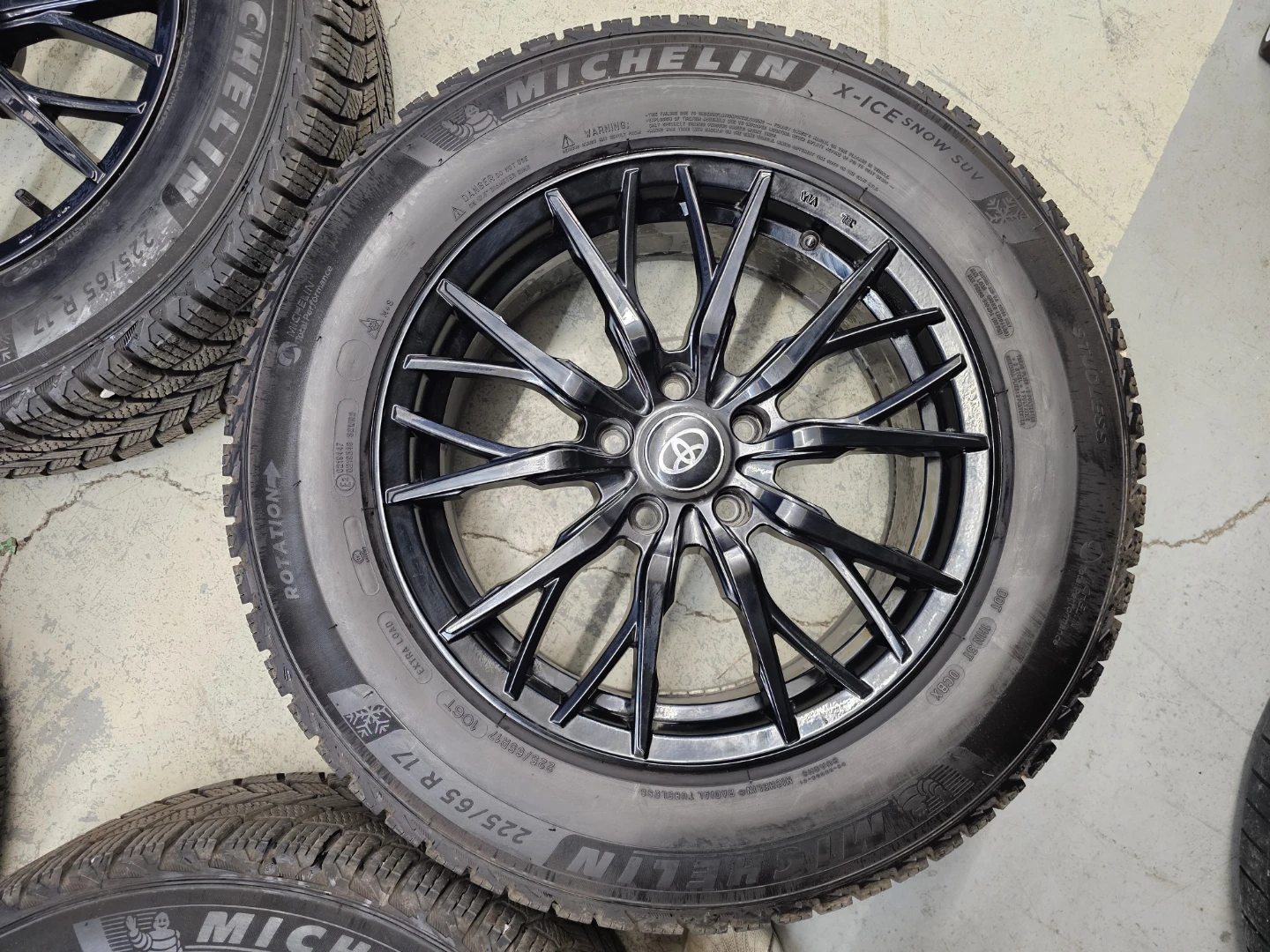 Set of 4 17" Michellin X-ICE winter tires on replica rims used on Toyota rav4 225/65 R17. Rims and tires are almost brand new, no damage, no cracks, no curb rash. Lots of thread left on tires