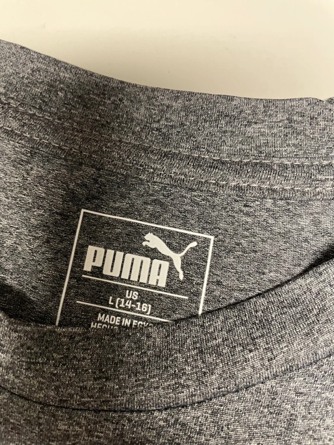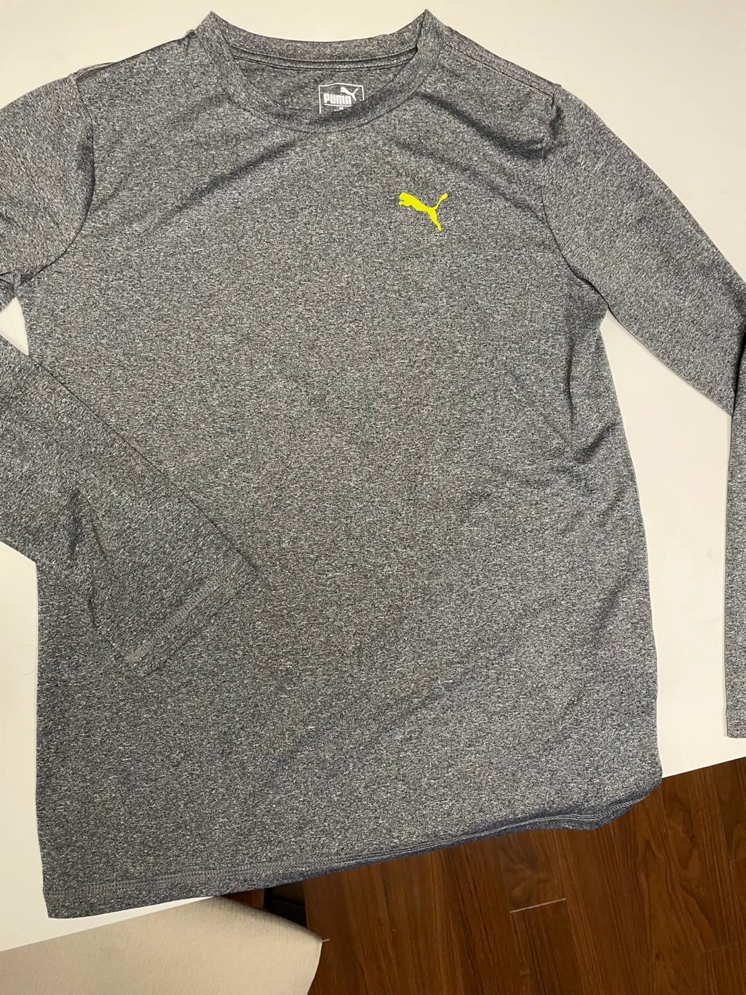 Selling a Puma long sleeve quick dry shirt in size L (14-16). It's a stylish grey colour with the Puma logo on the front. Perfect for sports. Cash, self pickup.