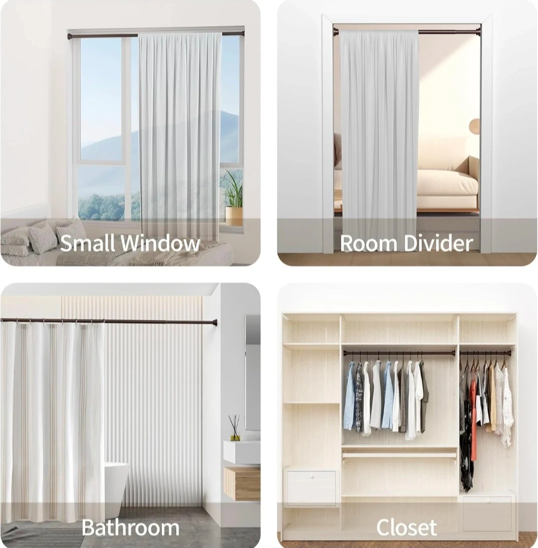 This adjustable curtain rod is perfect for small windows, room dividers, bathrooms, or closets. Heavy Duty 1" Diameter length 19"-89". New.