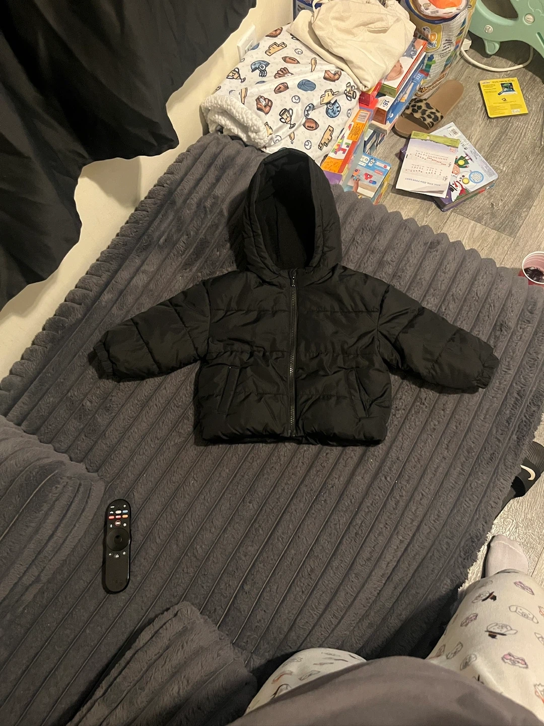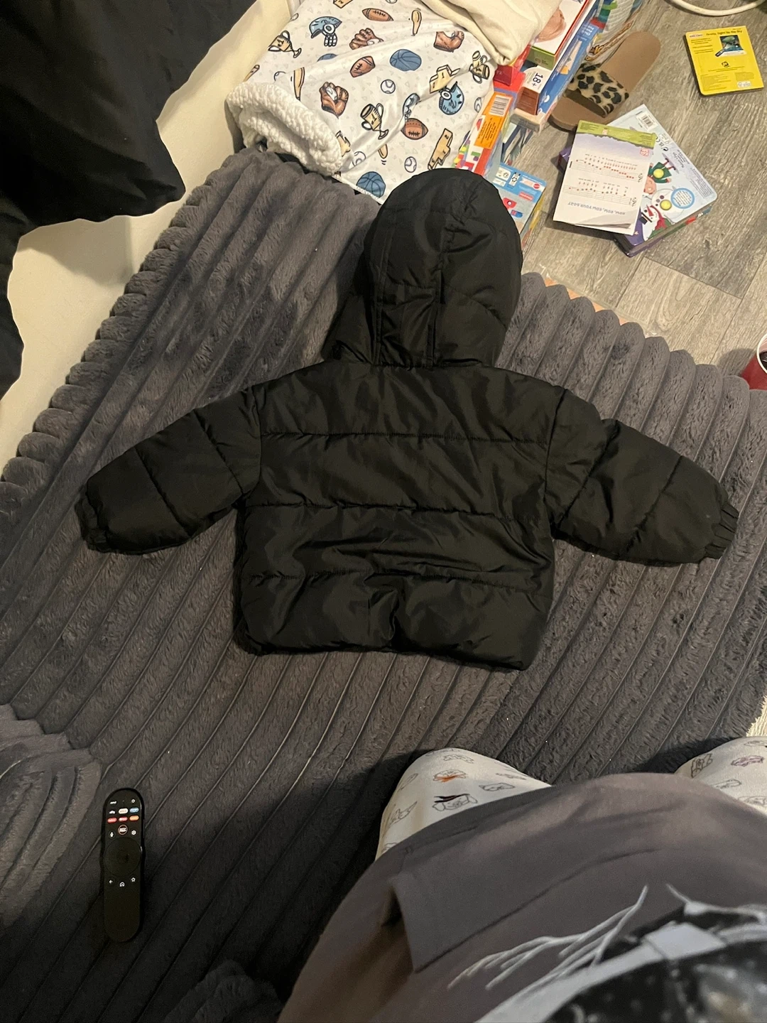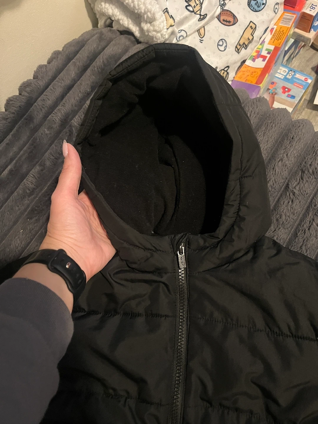 Here's a cute Old Navy black puffer jacket for your little one! It's size 18-24 months and perfect for keeping them warm and cozy. This jacket is in great condition and ready for a new adventure.