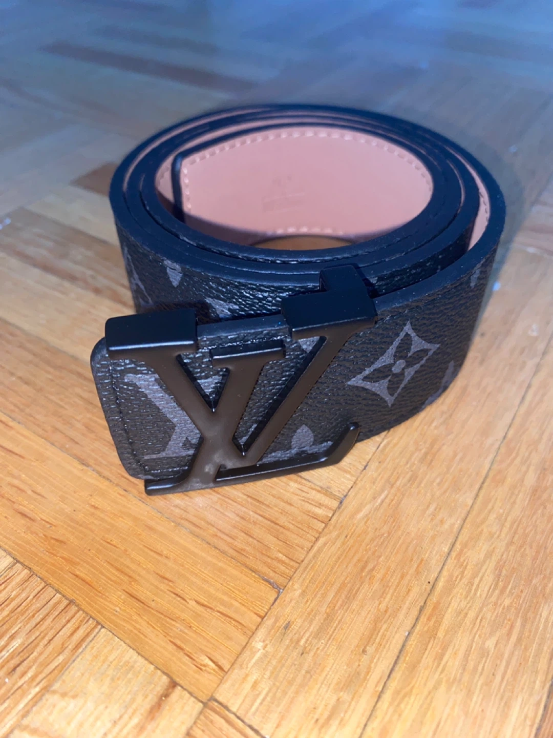 Selling a Louis Vuitton belt with a black monogram design! The buckle is also black and features the Louis Vuitton logo. It's in great condition and ready for a new owner. It’s a wholesale product.