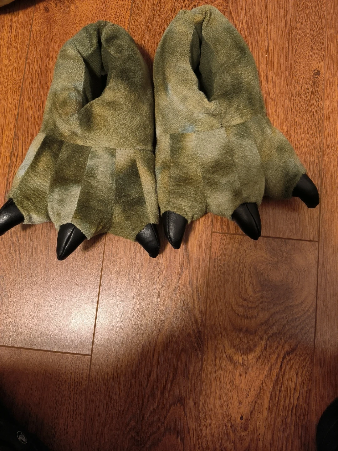 These fun dinosaur claw slippers are in great condition! They are a size 48CLA. Perfect for keeping your feet warm and adding a bit of fun to your loungewear