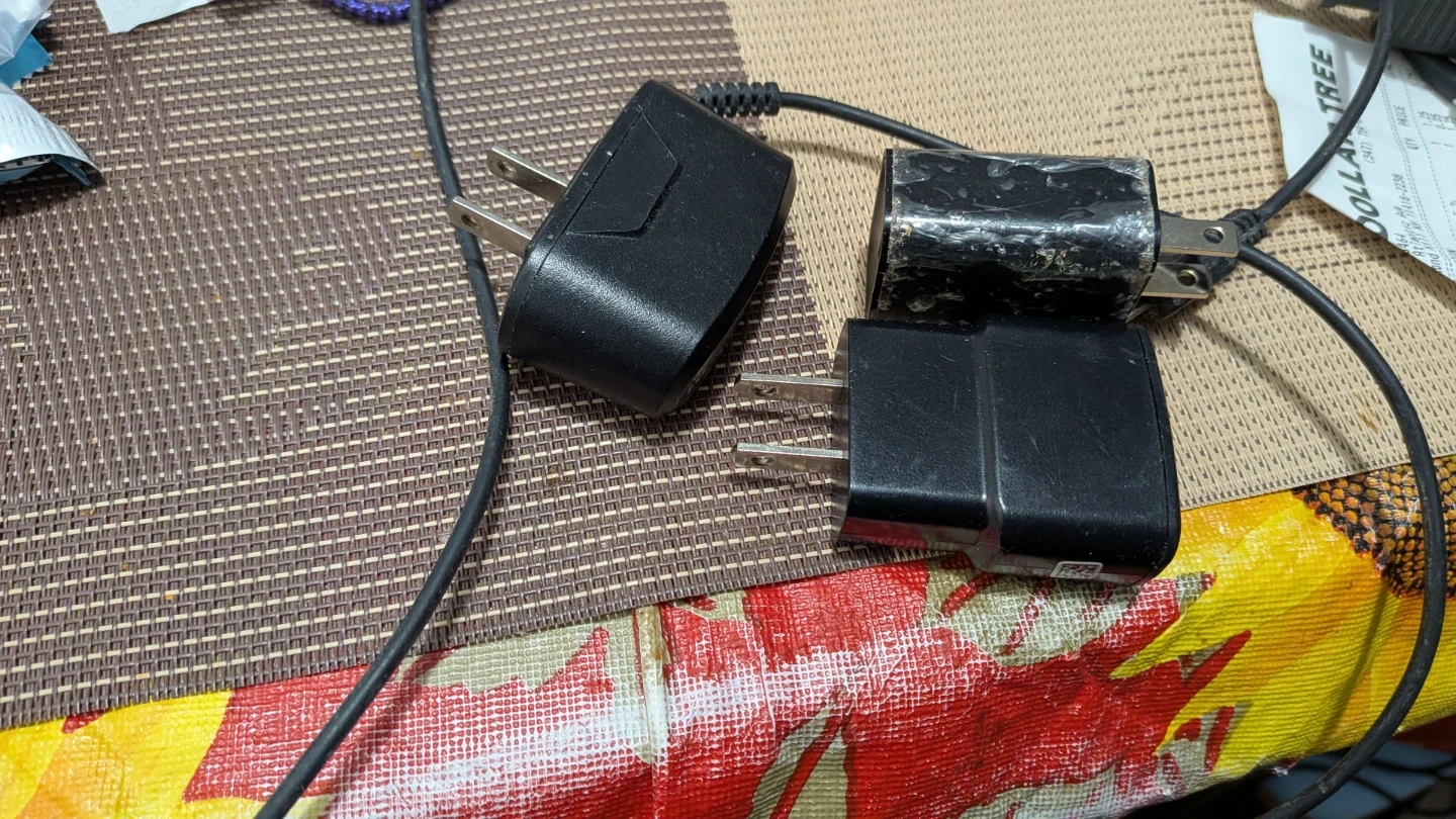 One is a Micro A power outlet charger. Two are phone chargers with USB ports.