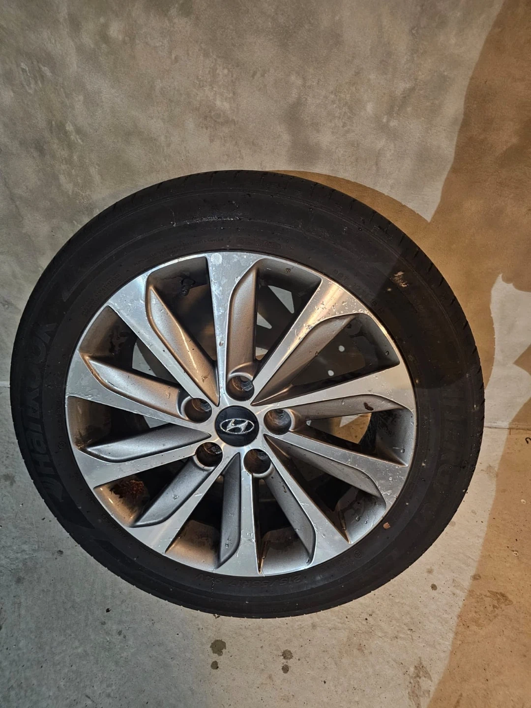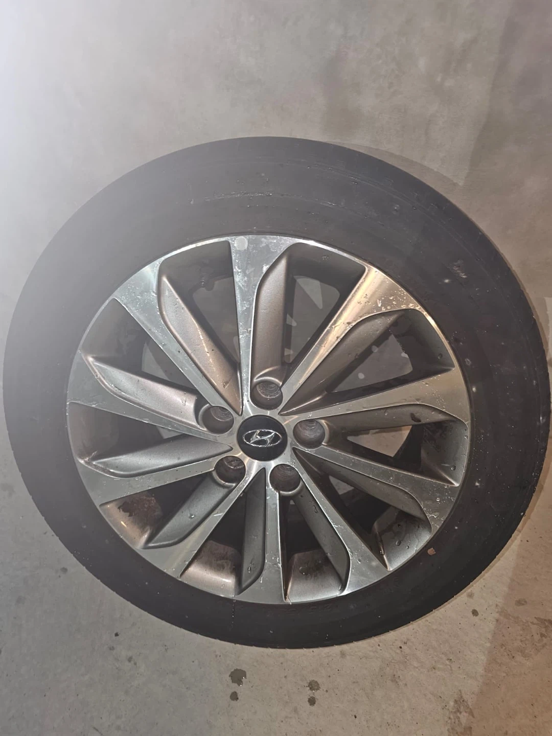 Selling a set of four Hyundai rims and tires( 215/55R17). They're used but still have some life left in them! Great for summer tires or replacing damaged rims.