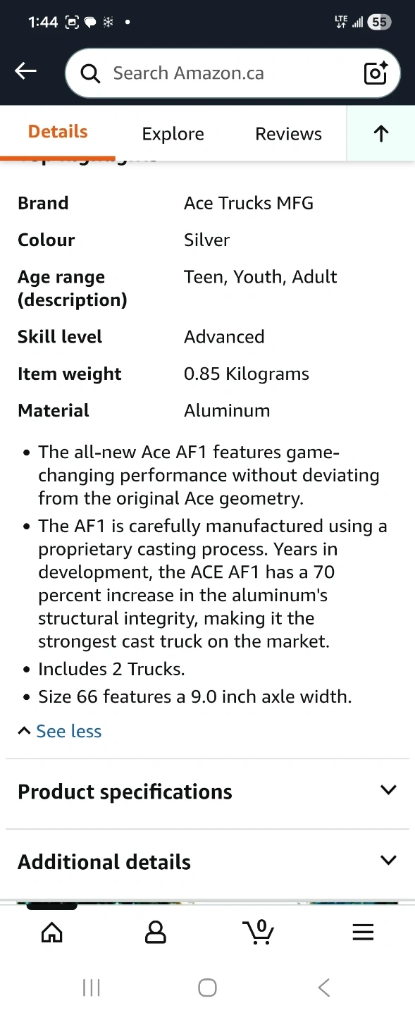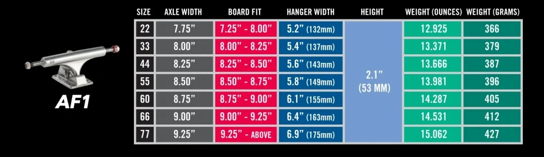 Get ready to grind with these Ace AF1 44 skateboard trucks! These trucks are new and ready to be mounted on your board. Ace AF1 trucks are known for their turning ability. The size 44 Ace AF1 trucks are designed for decks with a width of 8.25" to 8.5".