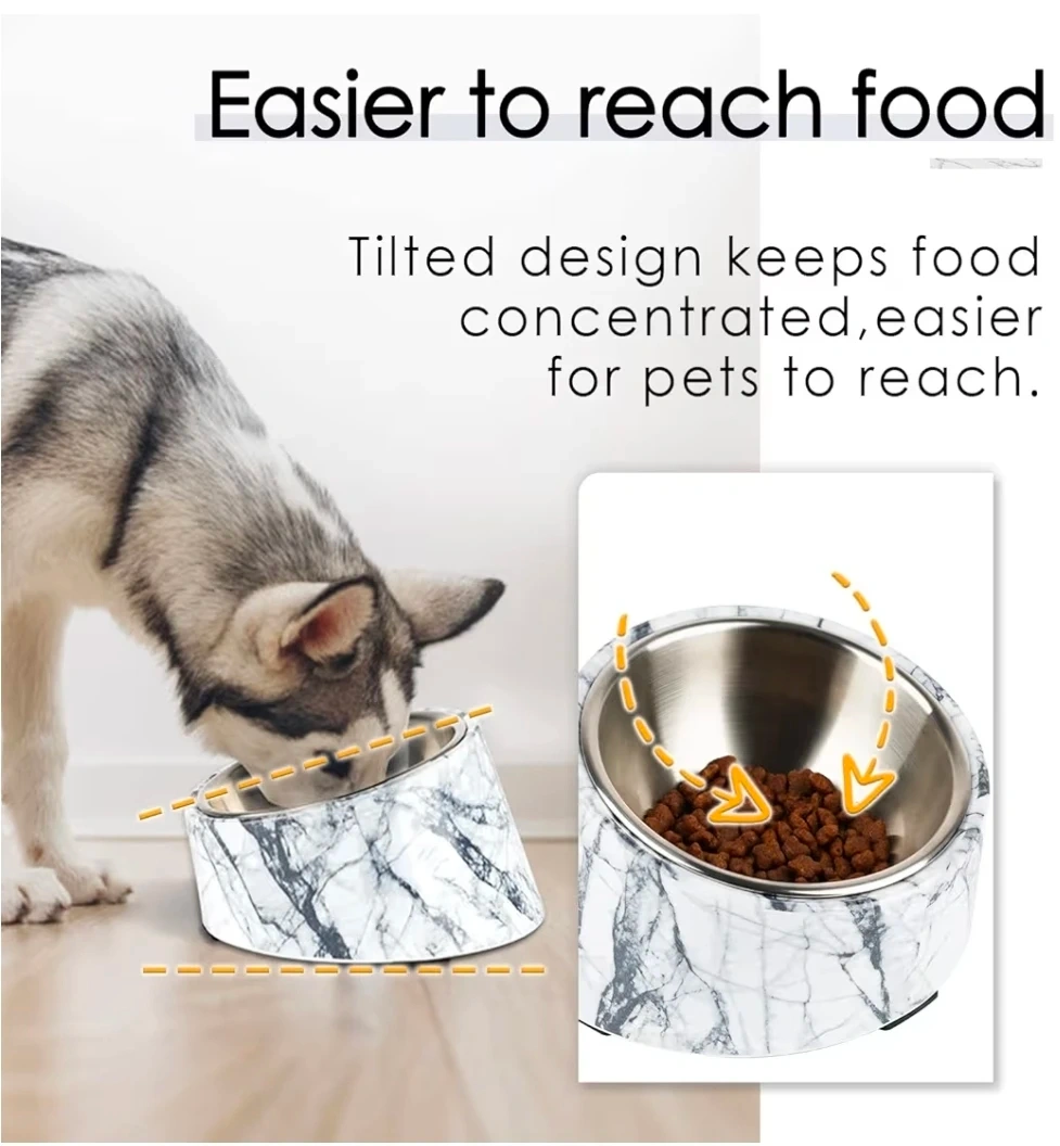 The tilted design keeps food concentrated, making it easier for pets to reach.
