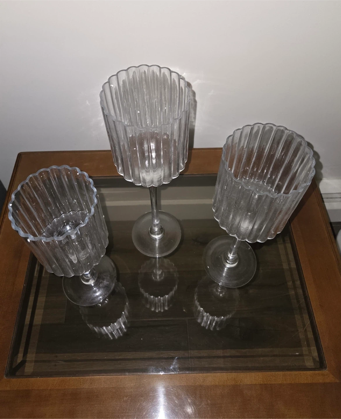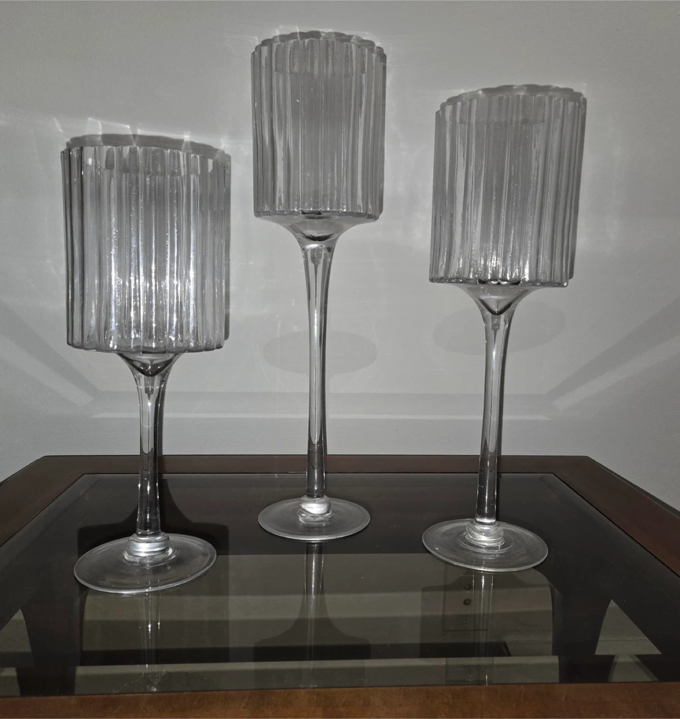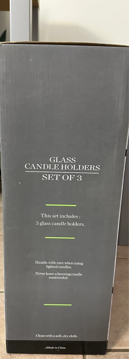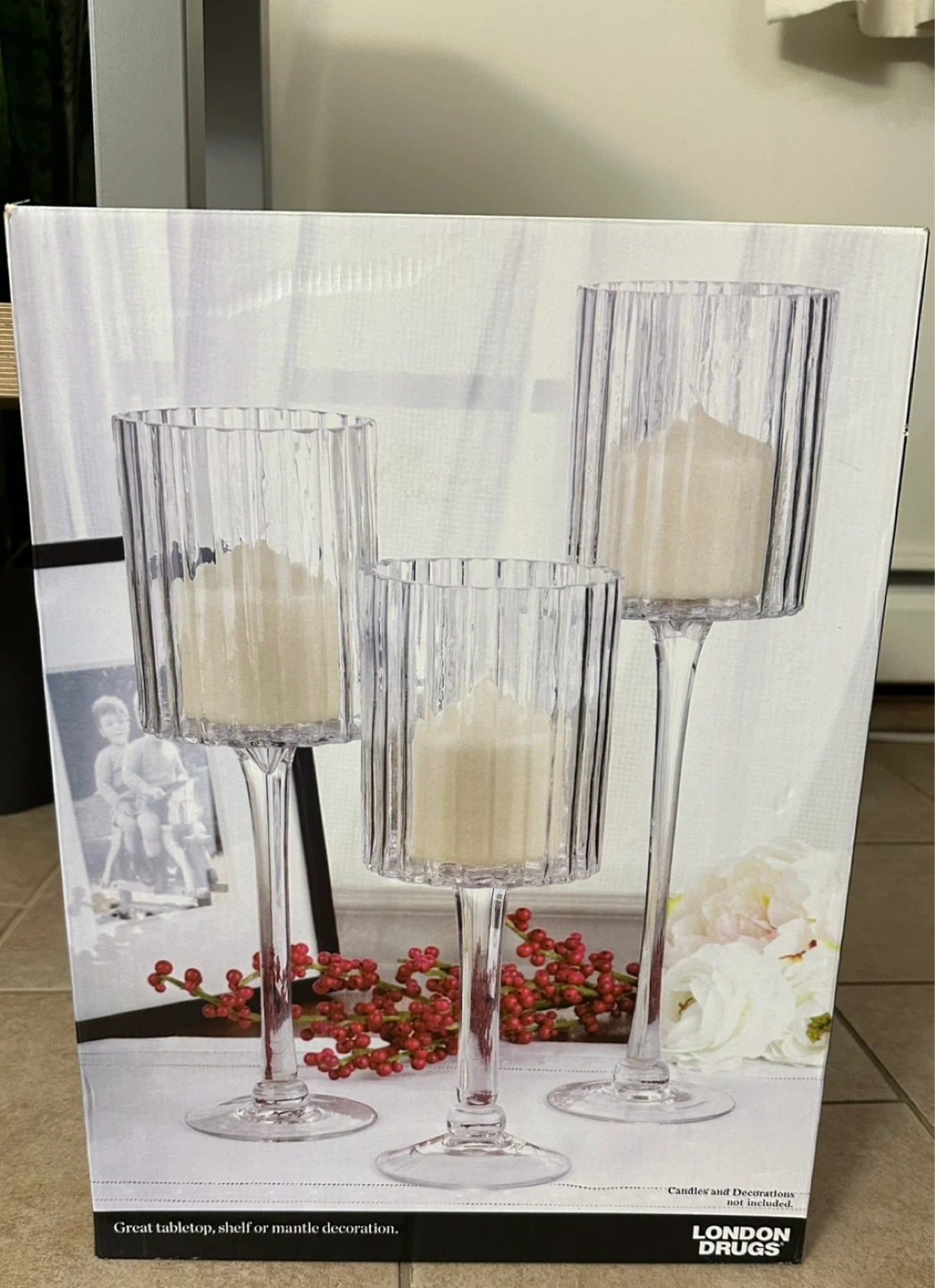 Selling a set of 3 glass candle holders from London Drugs! They are completely brand new and come in their original box. Perfect for adding a touch of elegance to your tabletop, shelf, or mantle decoration.