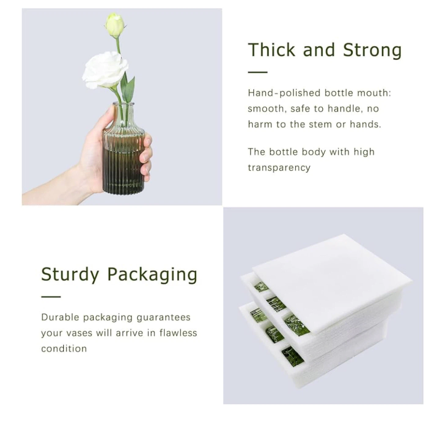 SAFE & SECURE PACKAGING: Your satisfaction is our priority! To ensure these mini vases reach you in perfect condition, we have specially designed packaging. Each vase is carefully wrapped in thick Styrofoam boxes, to avoid breakage in transportation. If you receive a damaged vase, reach out to us immediately.