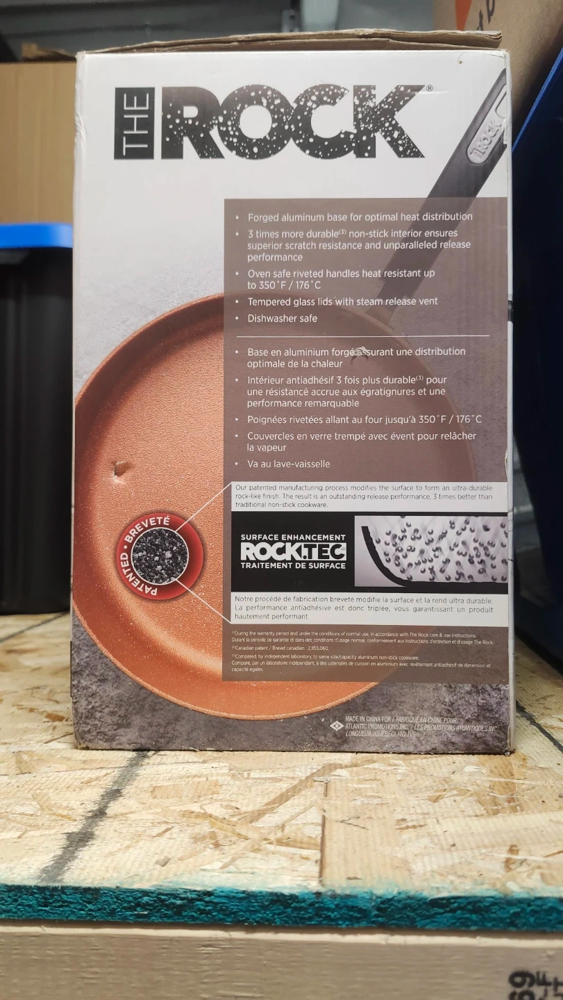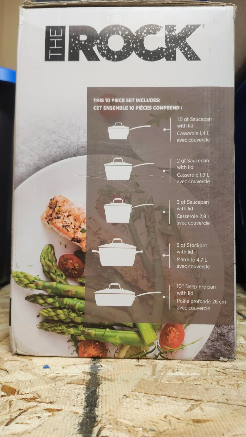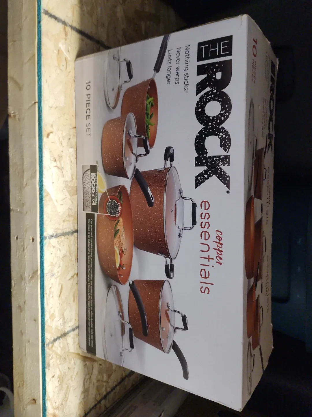 Selling a brand new The Rock Copper Essentials 10-piece cookware set! The box says it features Rocktec technology for outstanding non-stick performance and is 3 times better than traditional cookware. Never been opened