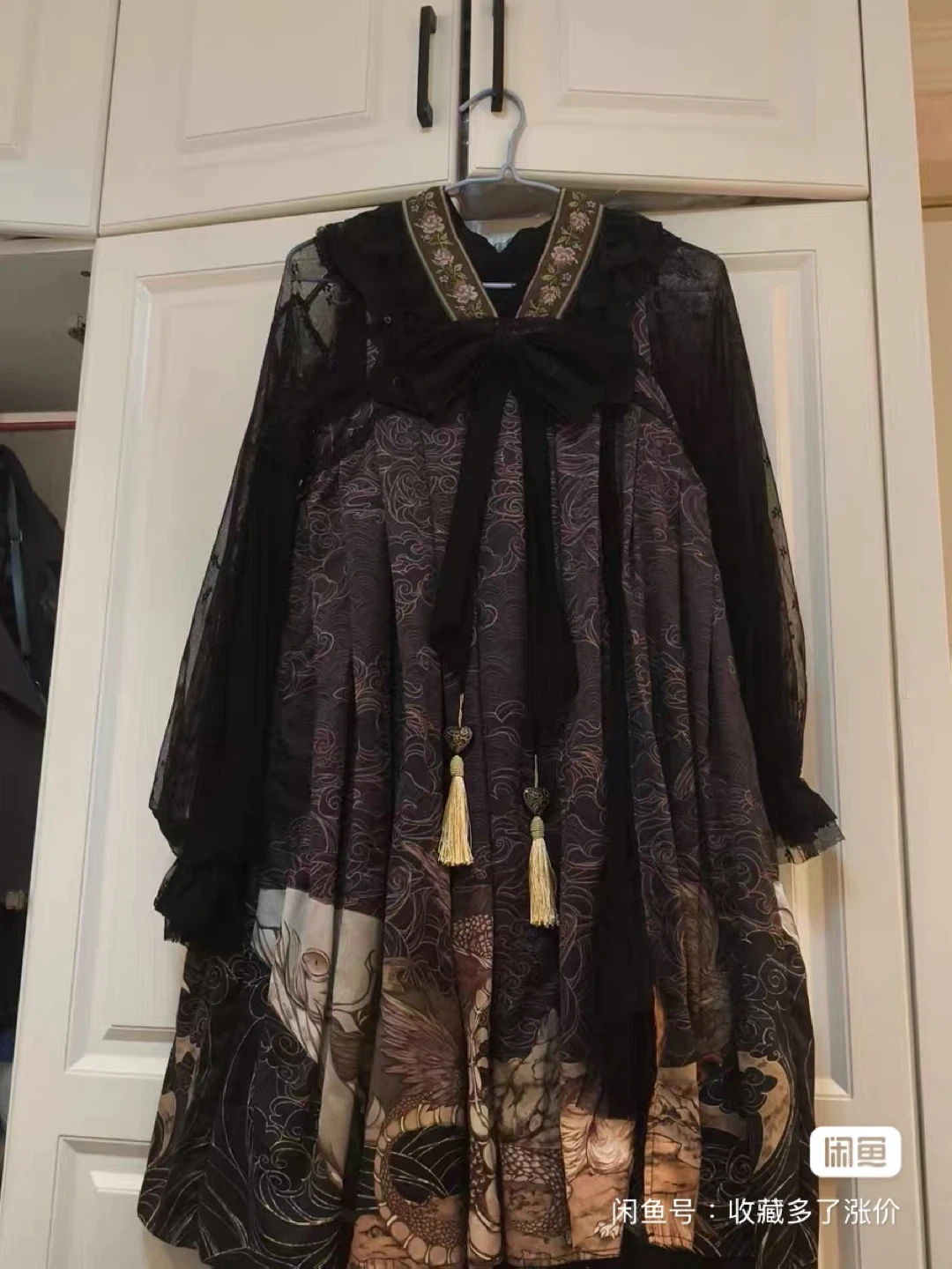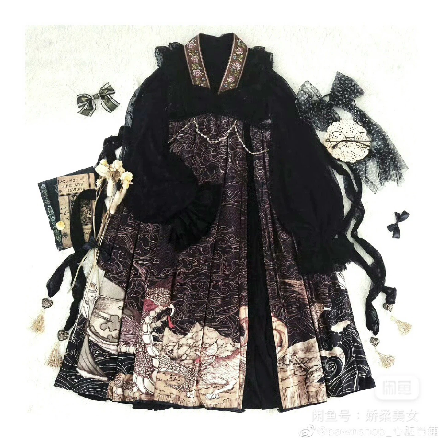 Selling a beautiful Lolita dress in black! It features delicate lace and a unique print. Perfect for adding a touch of elegance to your wardrobe
