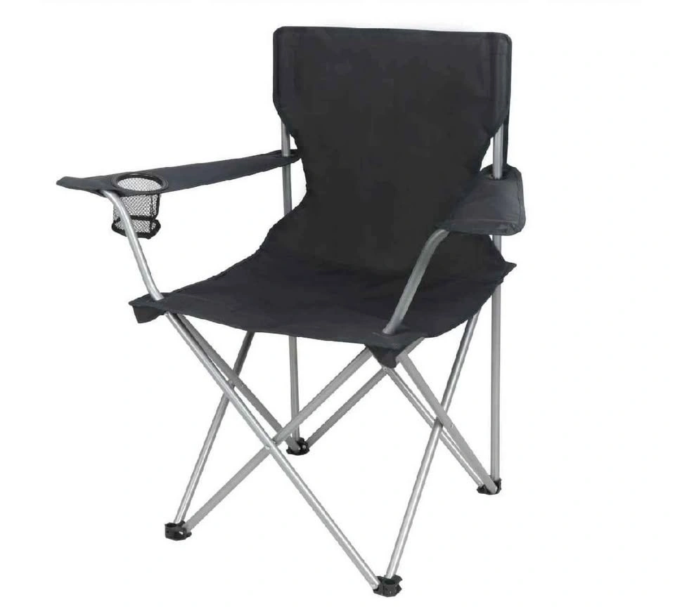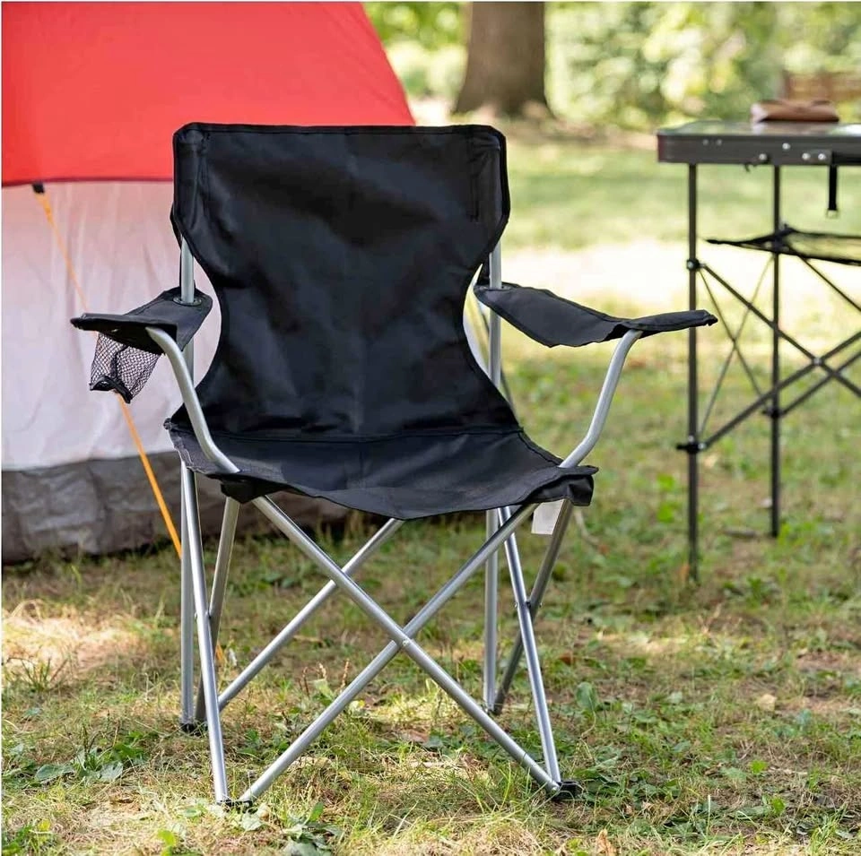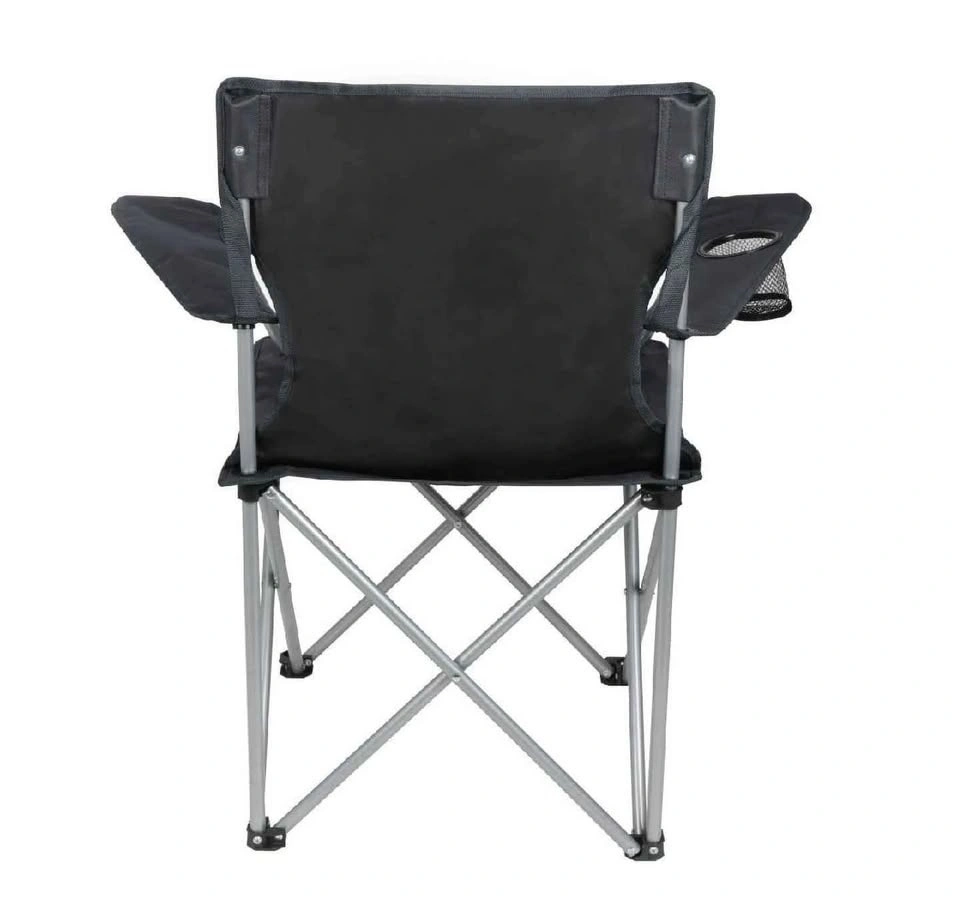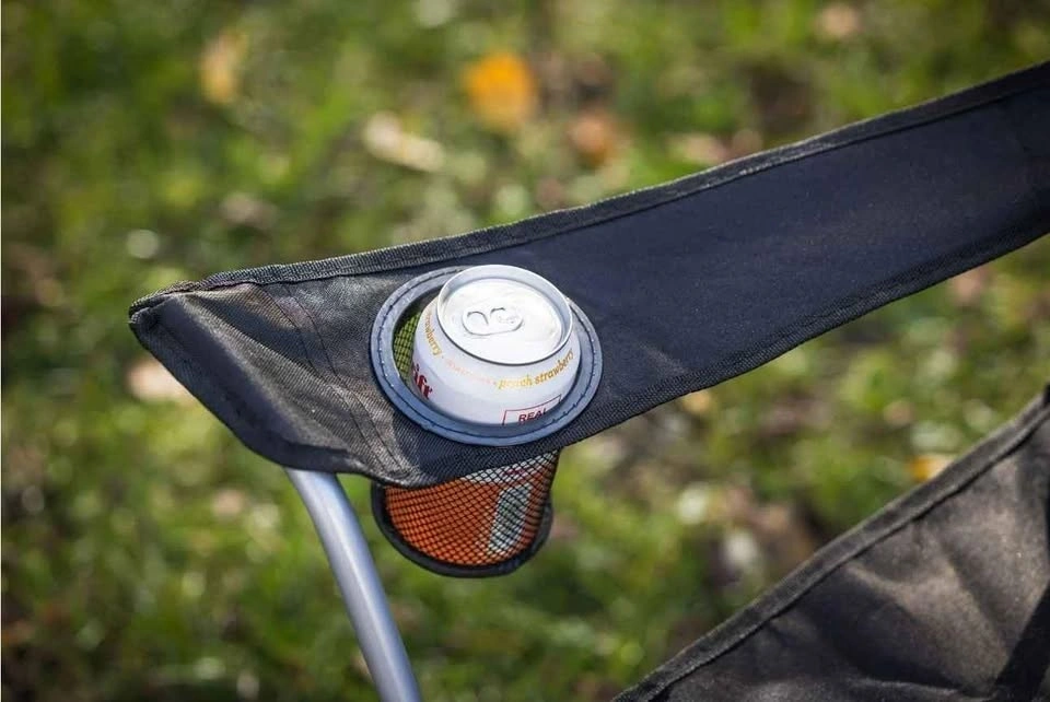 Camping Chair Quad Folding with Cup Holder, Black, Adult