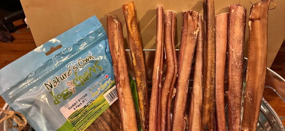 Nature's Own Bully sticks. Bully sticks are 12 inches in length. Selling them for $60 for 10 sticks along with 1 rabbit chews (pack of 6).