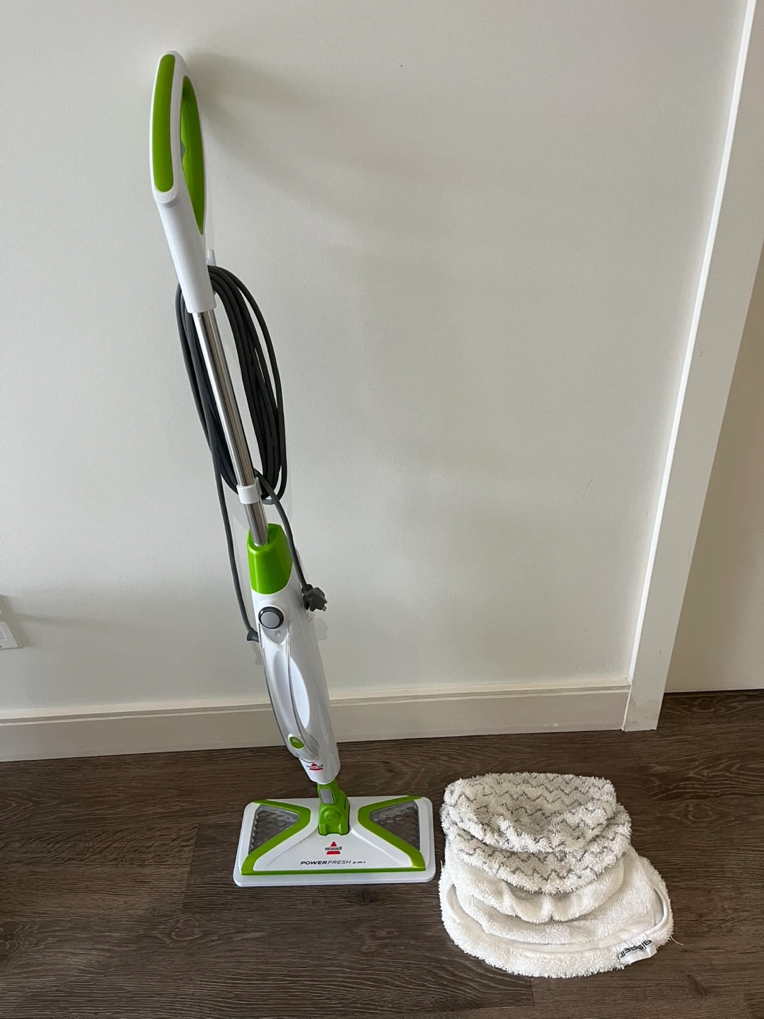 Selling a Bissell PowerFresh 2-in-1 hard floor steam mop! It's in great condition and ready to help keep your floors sparkling clean. Originally bought for $129.99 + tax. You will also get 4 extra bissel cloths, that were purchased additionally.