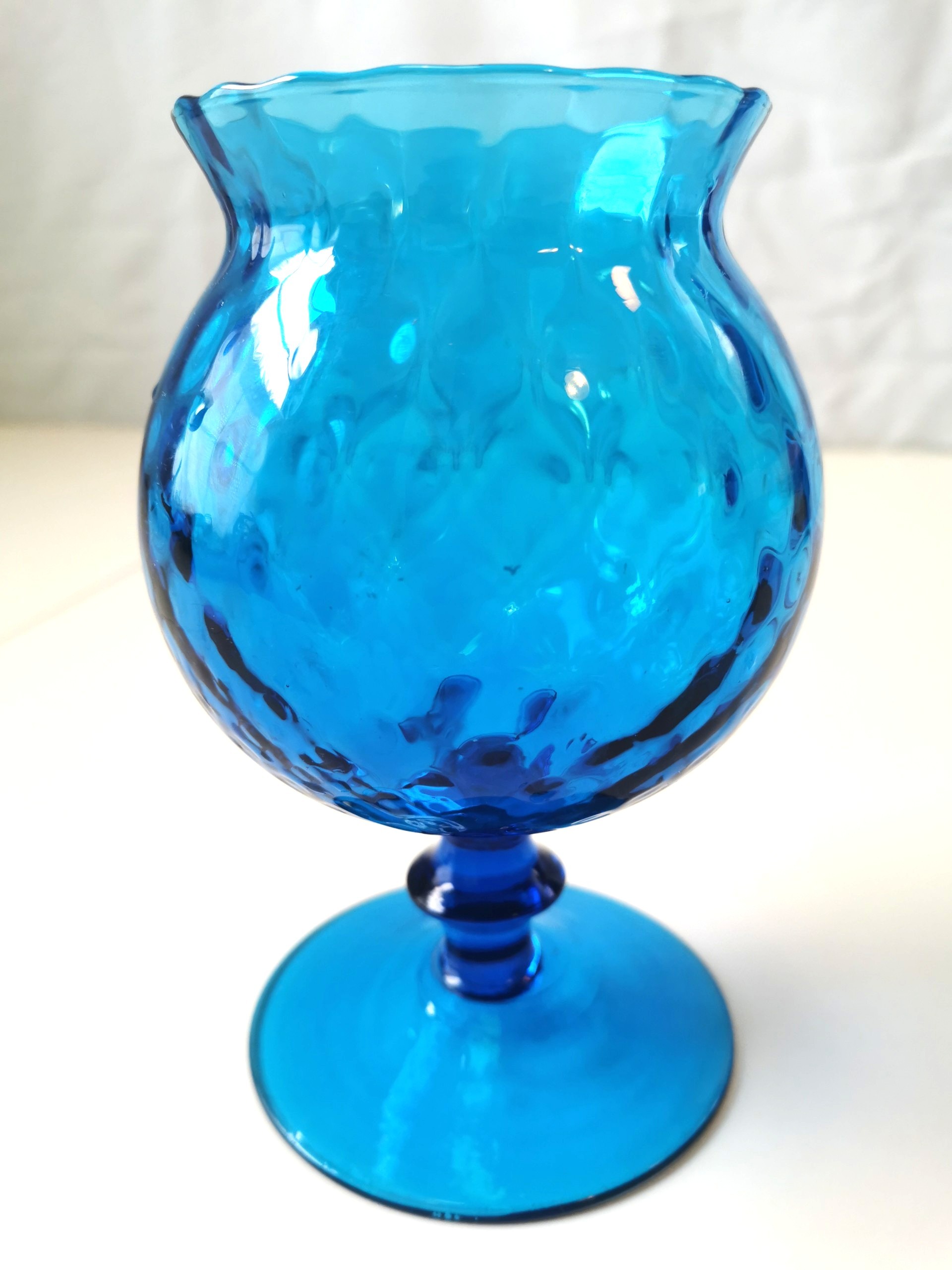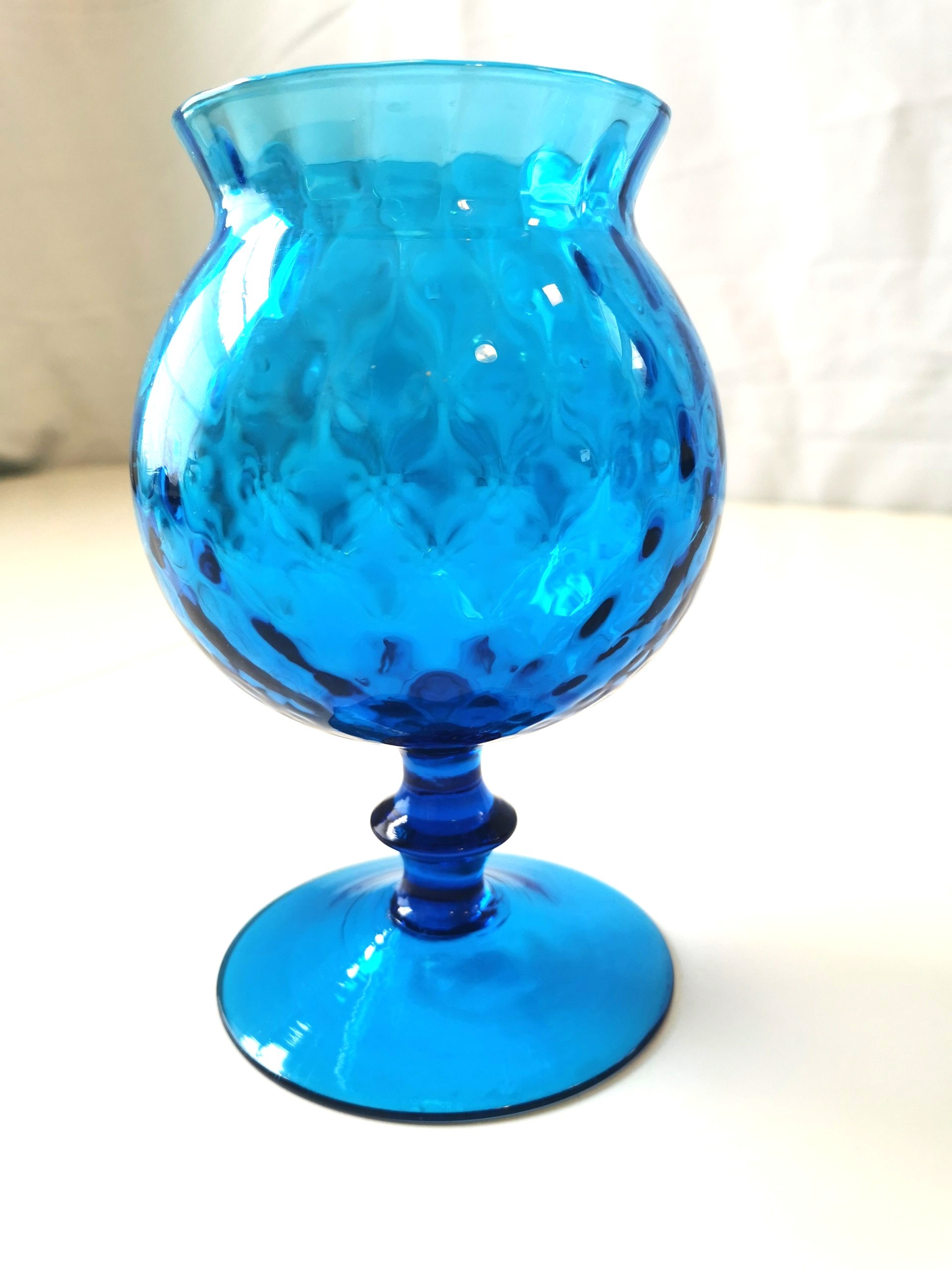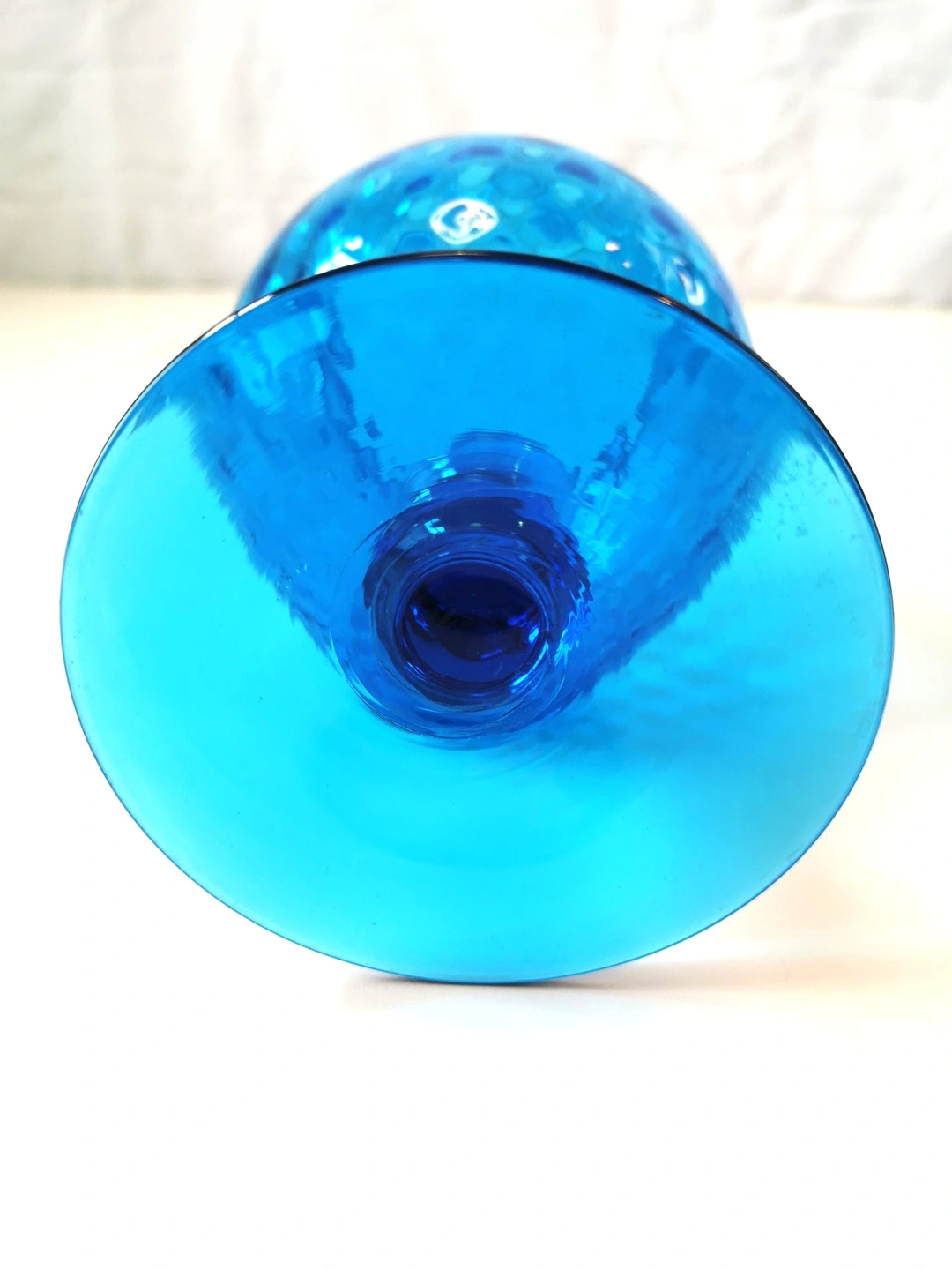 Brand: Indiana Glass Company (Colony Line) Pattern: King’s Crown (Thumbprint) Color: Riviera Blue (Transparent Light Blue/Aqua) Circa: 1971 Dimensions: 7" Height | 4.75" Rim Diameter | 3.5" Base Diameter