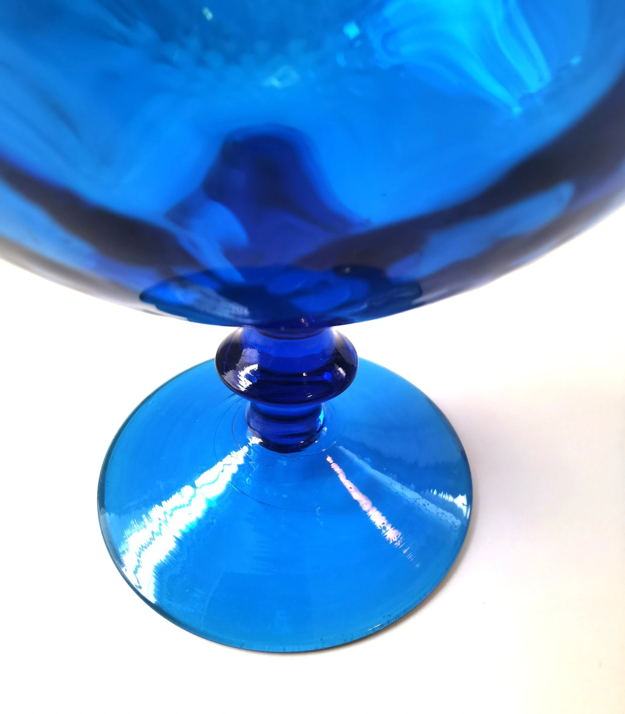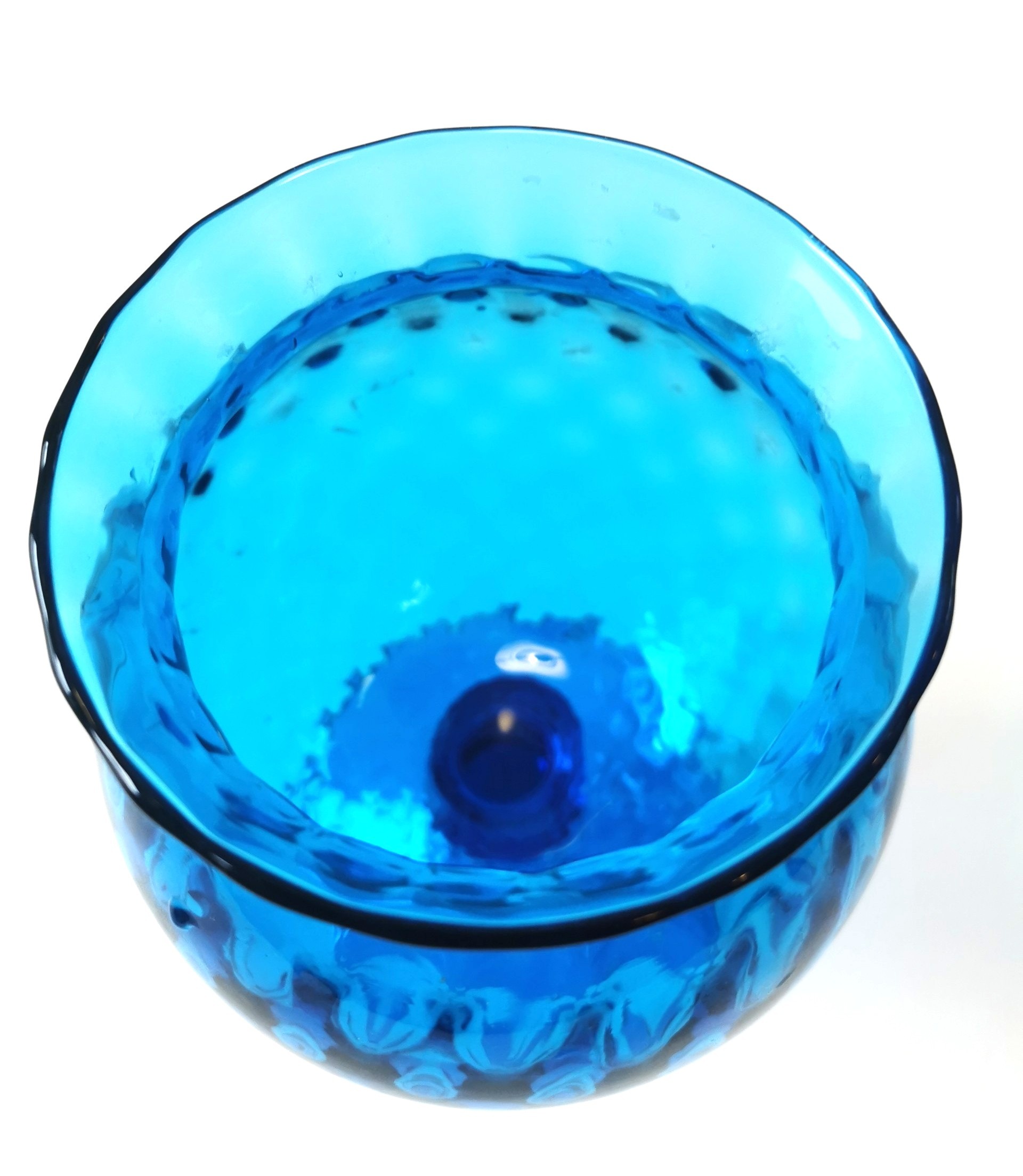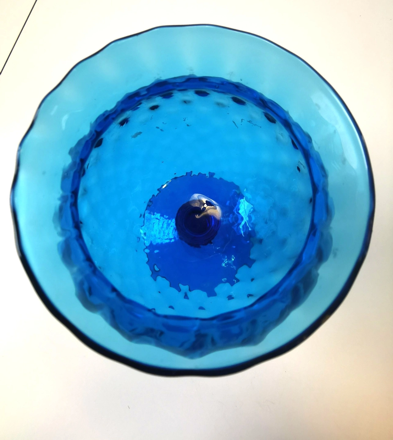 1971 Indiana Glass Kings Crown Riviera Blue Candy Dish 7 inches