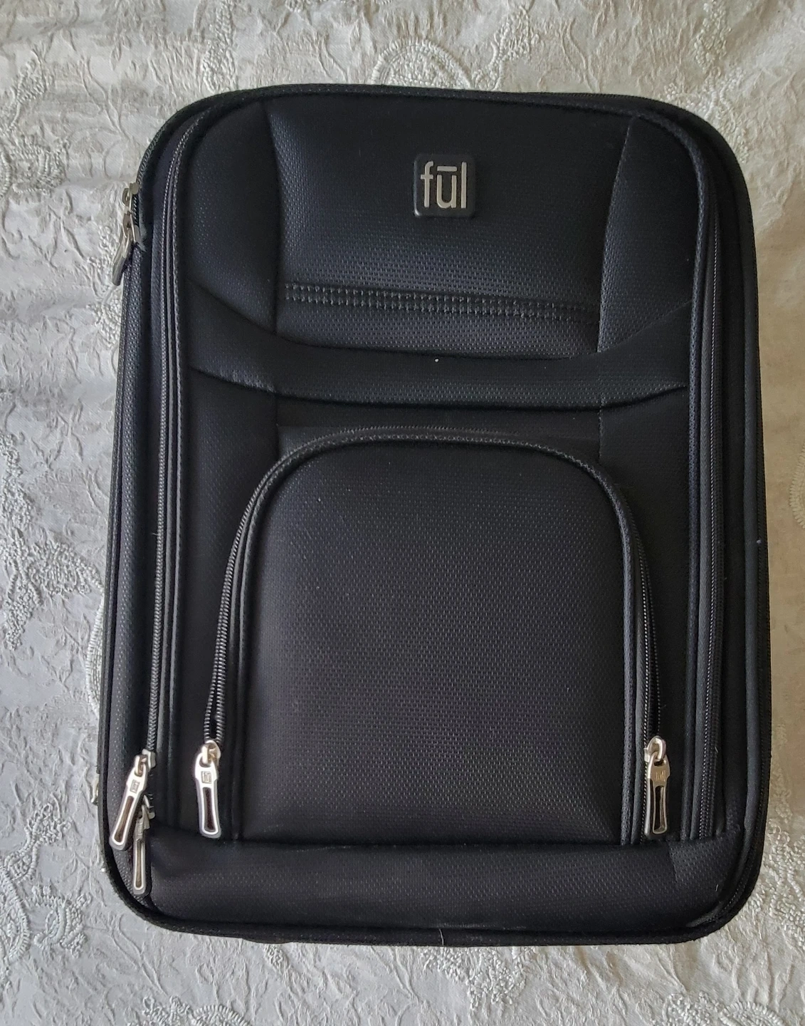 Selling a Fül black rolling carry-on luggage. It's in great condition and ready for your next trip! It has a spacious interior with multiple compartments to keep your belongings organized