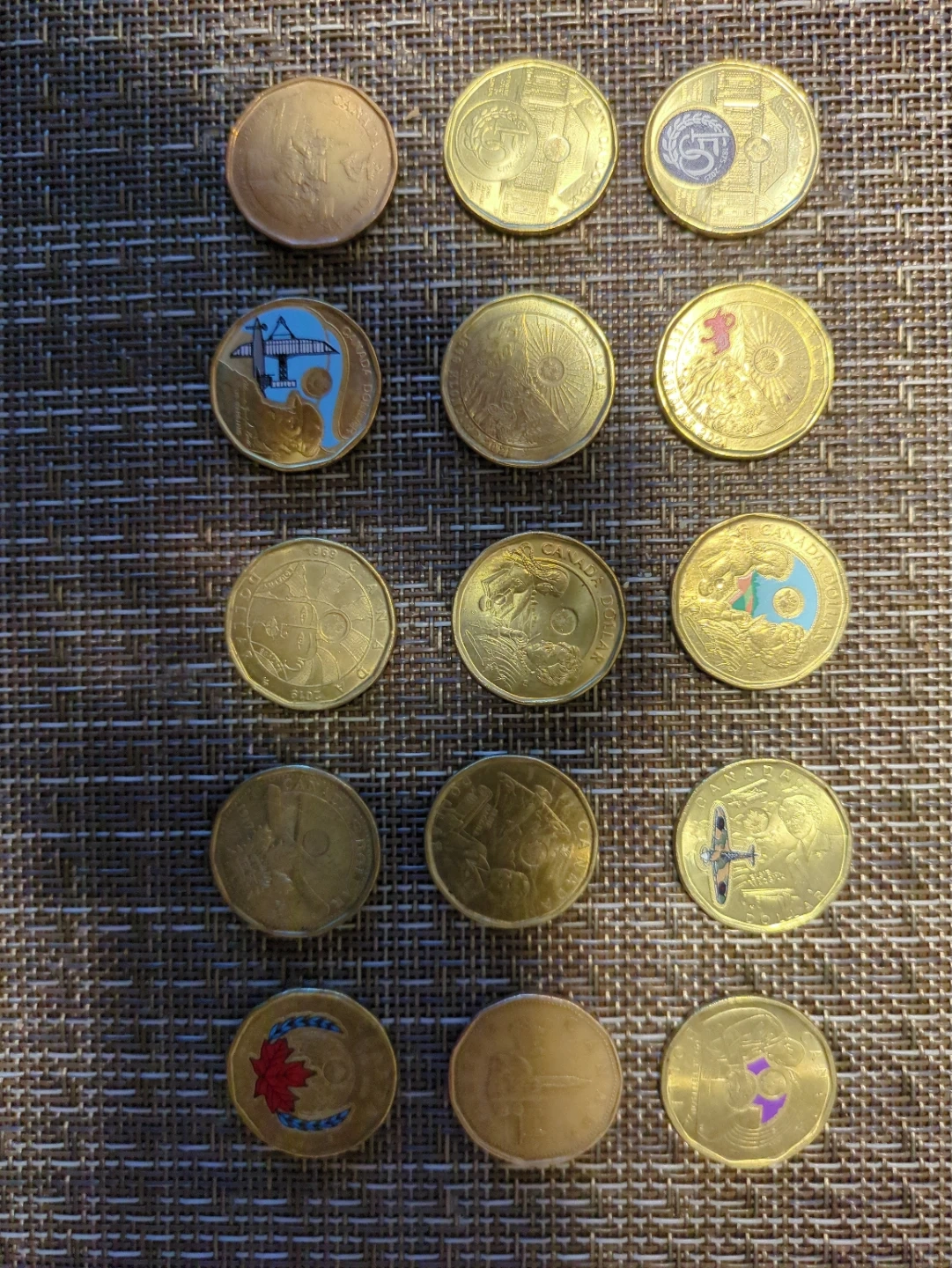 Selling Canadian commemorative loonies! They feature various designs and are in good condition. Perfect for collectors or anyone interested in Canadian currency.
