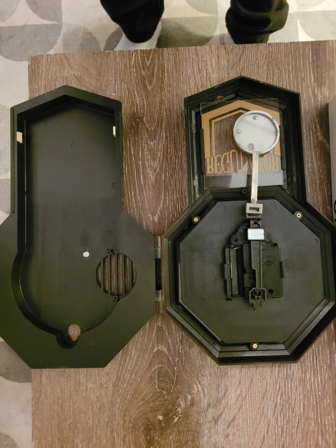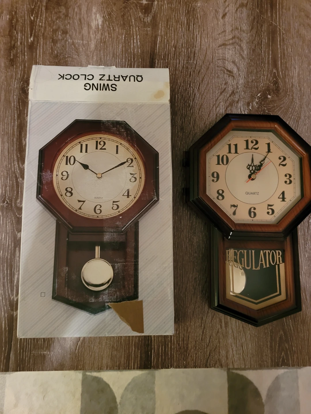 Selling a swing quartz clock. It has a regulator and comes with its original box. Perfect for adding a touch of classic charm to any room!