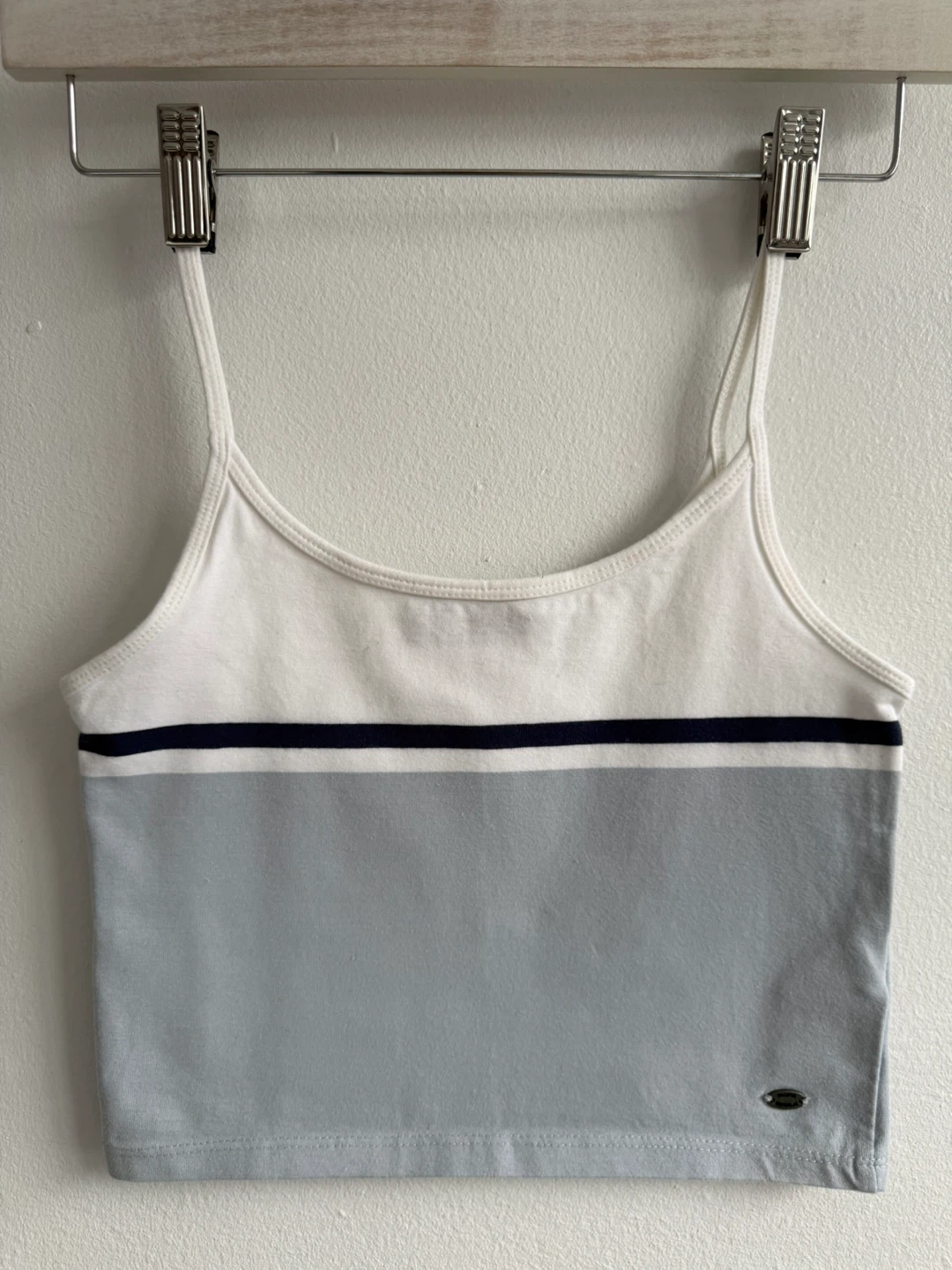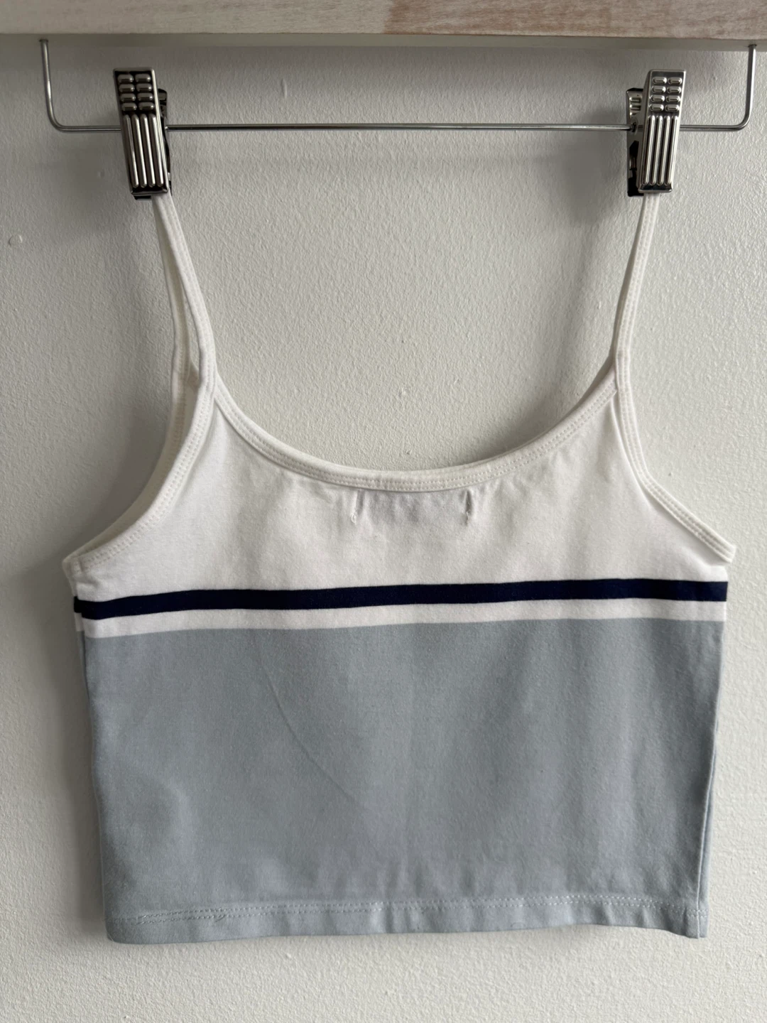 Selling a cute Pull&Bear crop top! It's a size small and features a stylish striped design in white and grey. Perfect for summer! This top is from a store in Athens Europe really cute design clothes!