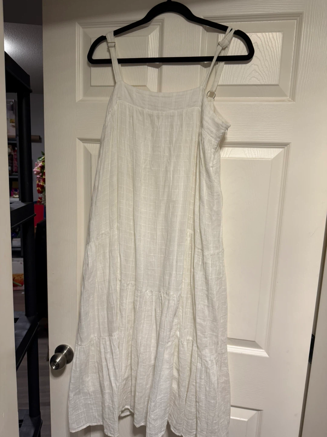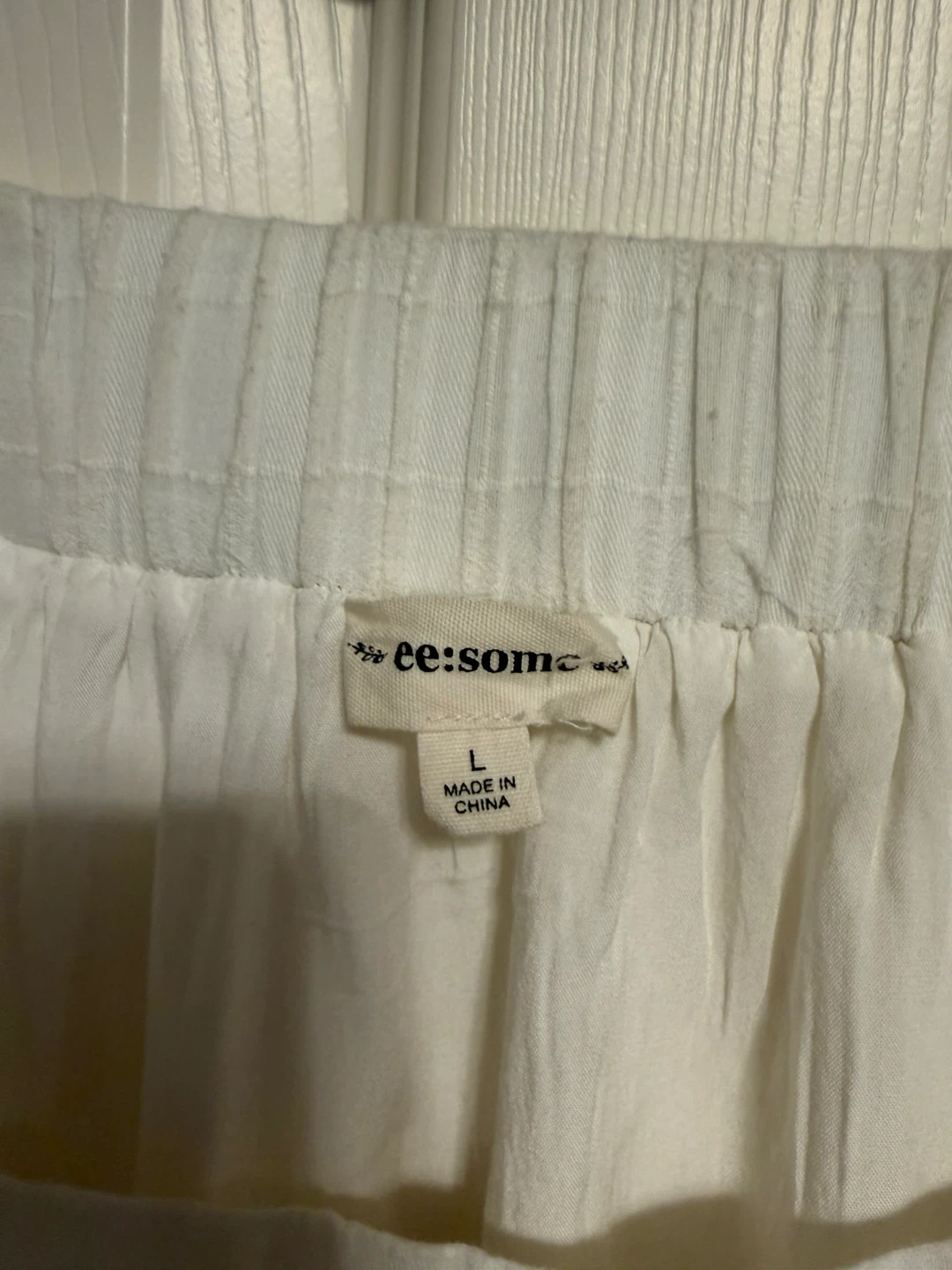 Selling a lovely white dress from ee:some! It's a size large and perfect for a casual day out or dressing up for a special occasion. The material is light and airy, making it super comfy for the warmer weather