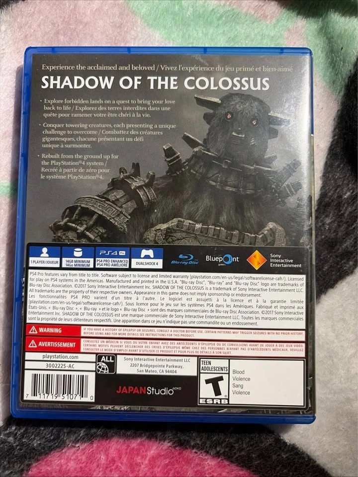 Buy & SellPS4 Shadow Of The Colossus Tested WorksPS4 Shadow Of The Colossus Tested Works$20Pickup in Newmarket.WHERE TO MEETCheck LocationView MapSELLERBrandonNewmarket Heights100 reviews0 chats·1 favorites·2 viewsSEND CHAT TO SELLERHi Brandon! I’m interested in your listing.Hi Brandon! I’m interested in your listing.Get the Karrot app to chatSign In to chat