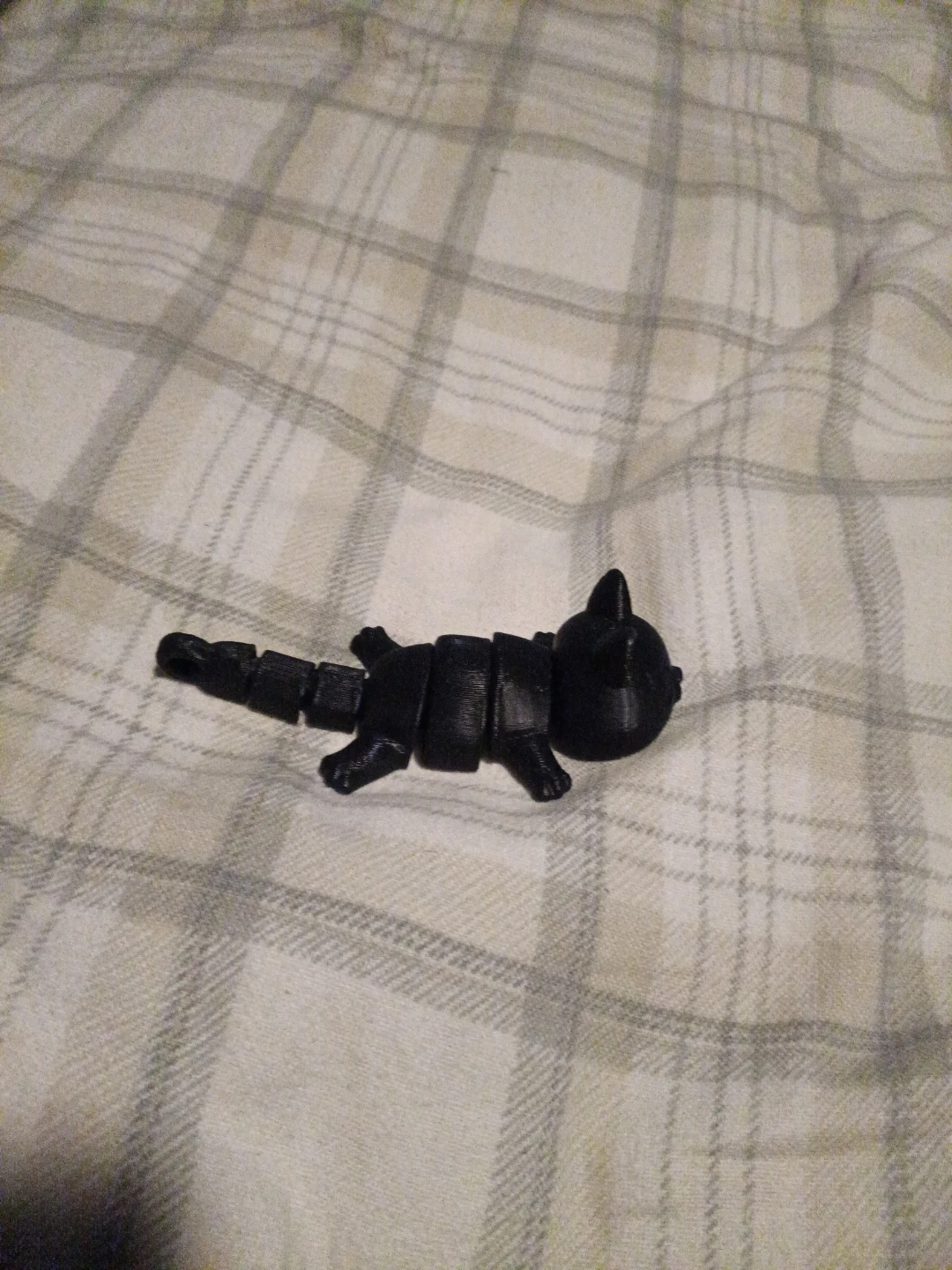 Check out this cool 3D printed articulated cat! It's black and has a fun, flexible design. It's a unique piece to add to your collection or as a gift for a cat lover