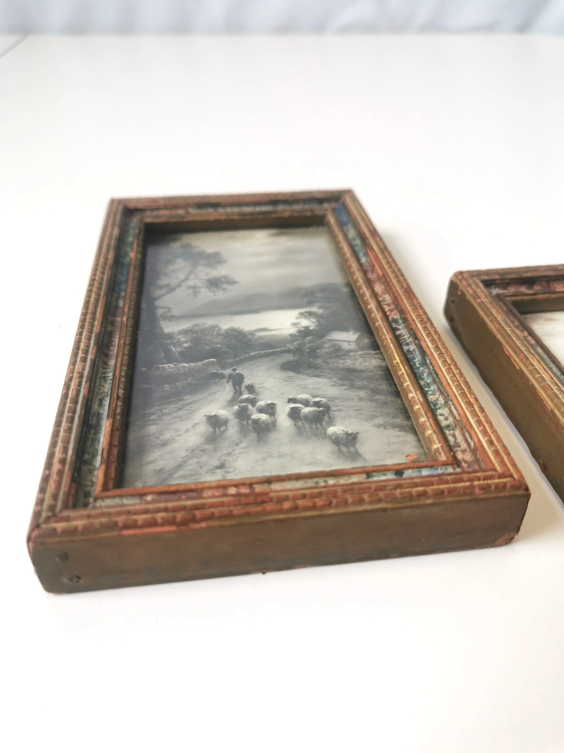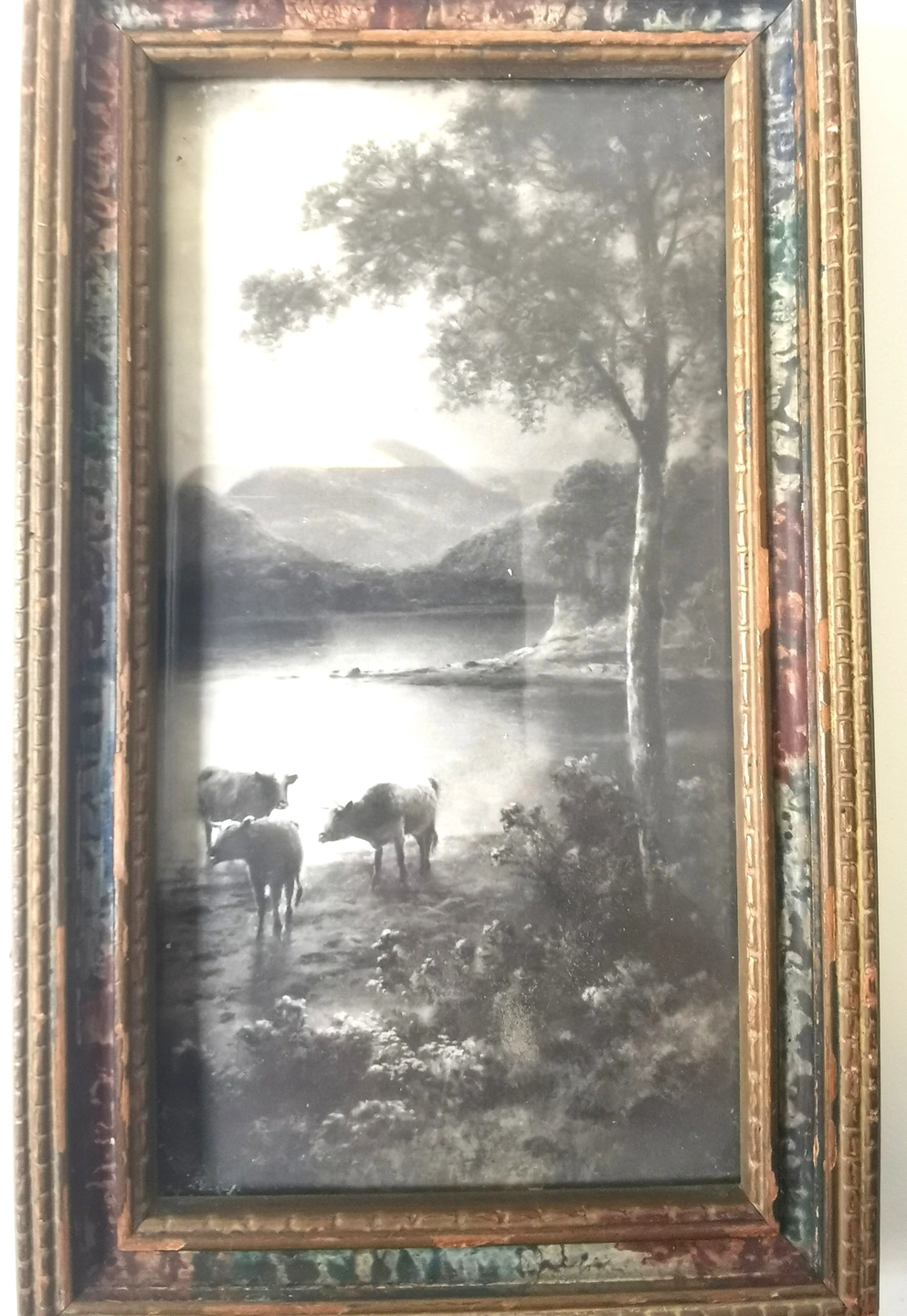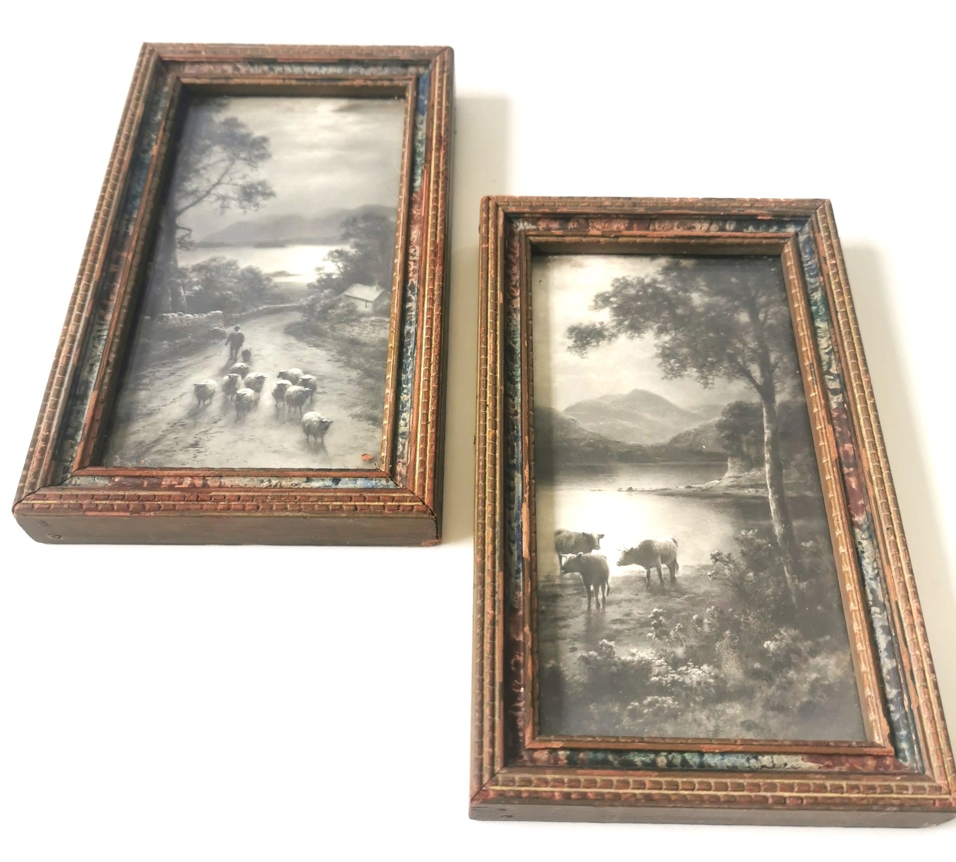 These prints were produced in a traditional Victorian / Edwardian style and feature romantic rural scenes with livestock and countryside views.