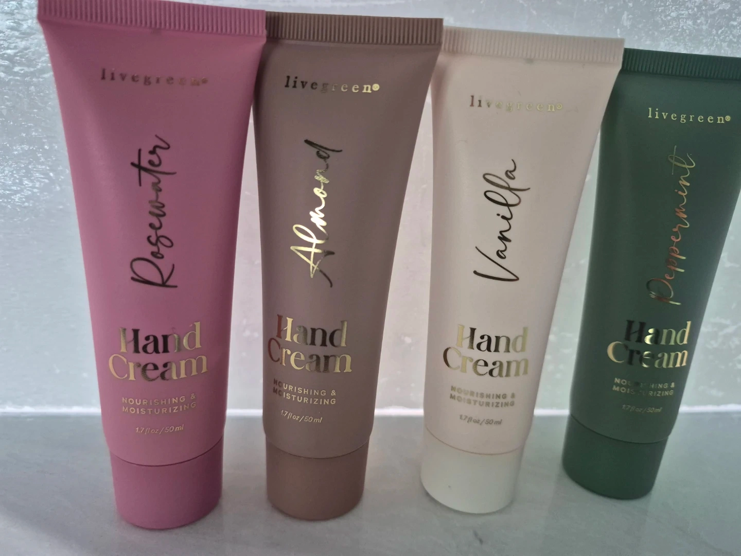 I'm selling a set of Live Green hand creams! This set includes four different scents: Rosewater, Almond, Vanilla, and Peppermint. Each tube contains 1.7 fl oz / 50 ml of nourishing and moisturizing hand cream.