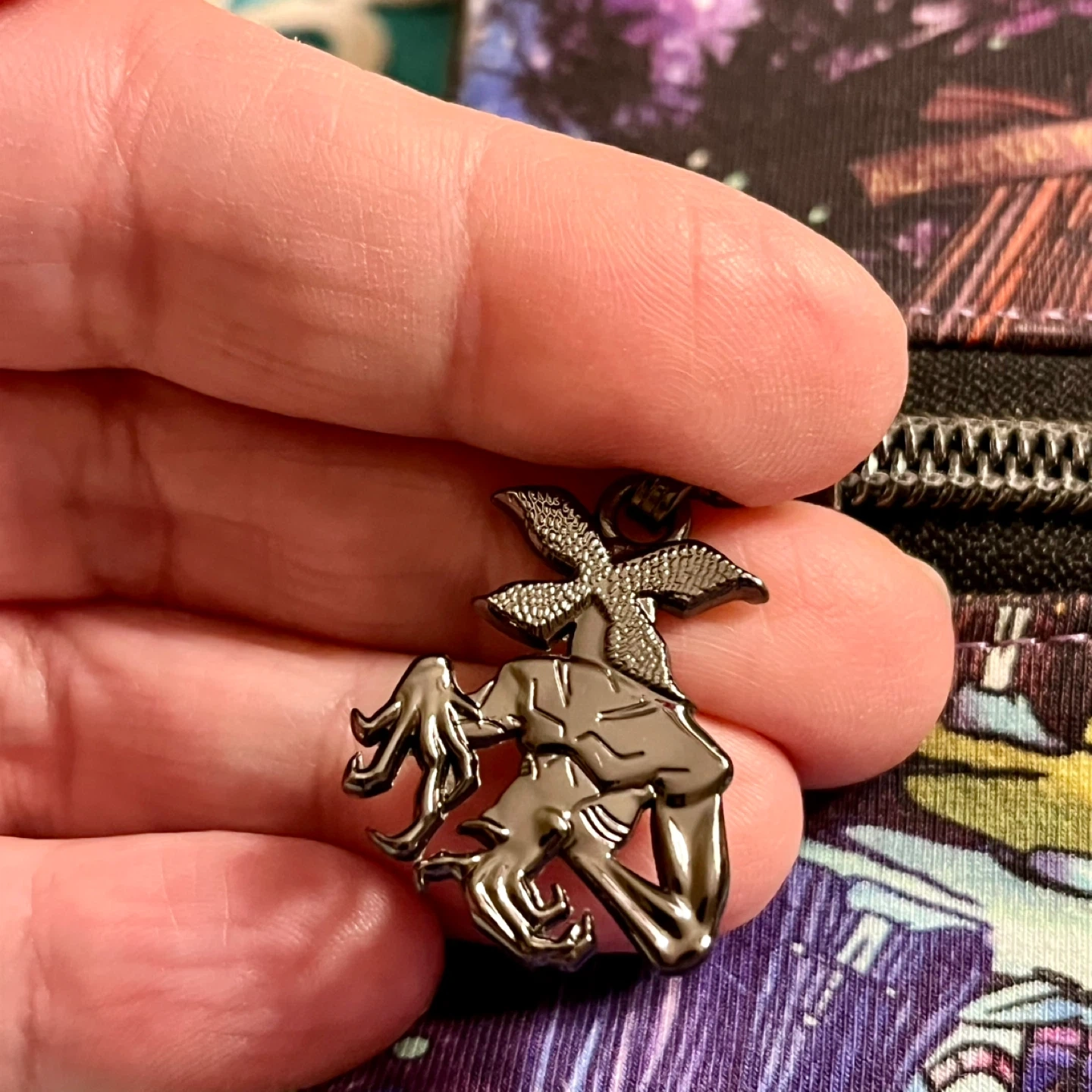 EUC handmade Stranger Things crossbody bag. Measures 12” x 12”. Lined, excellent zippers - one with a demagogon charm/pull and beautifully stitched. Very sturdy and durable. A one-of-a-kind piece.