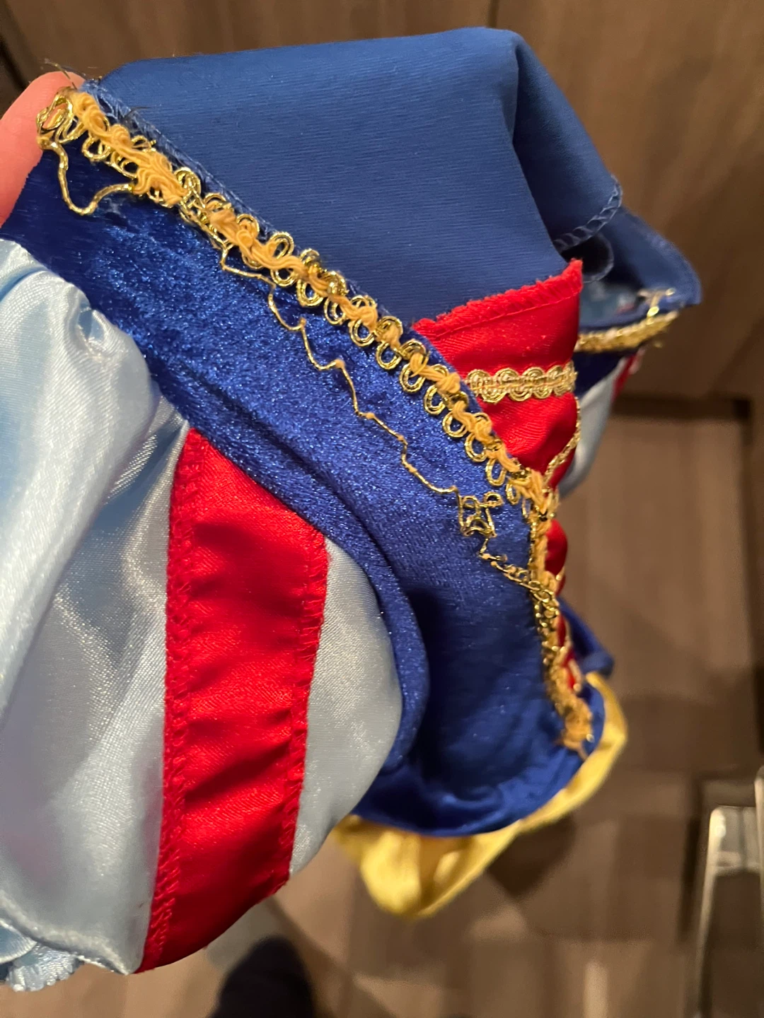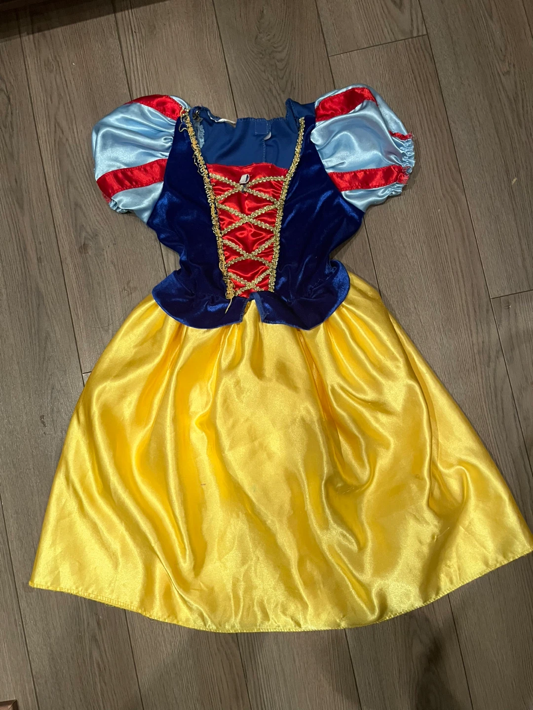 Selling a cute Snow White costume dress! It's in good condition, perfect for dress-up or Halloween. The dress features the classic Snow White colours: blue, red, and yellow.