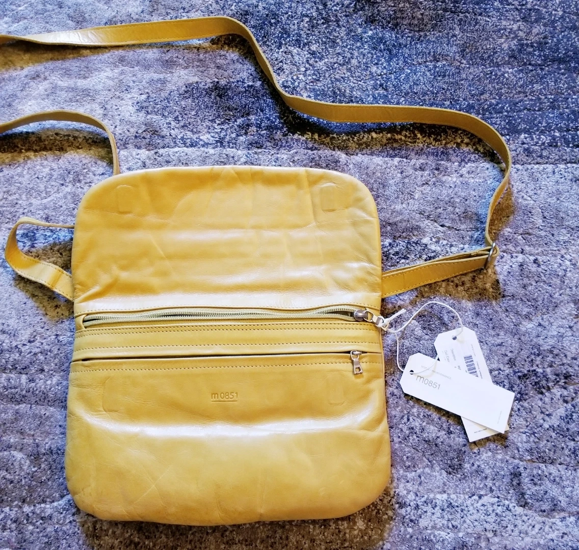 Selling a stylish crossbody bag from m0851. It's a lovely yellow colour and made of leather. Perfect for everyday use!