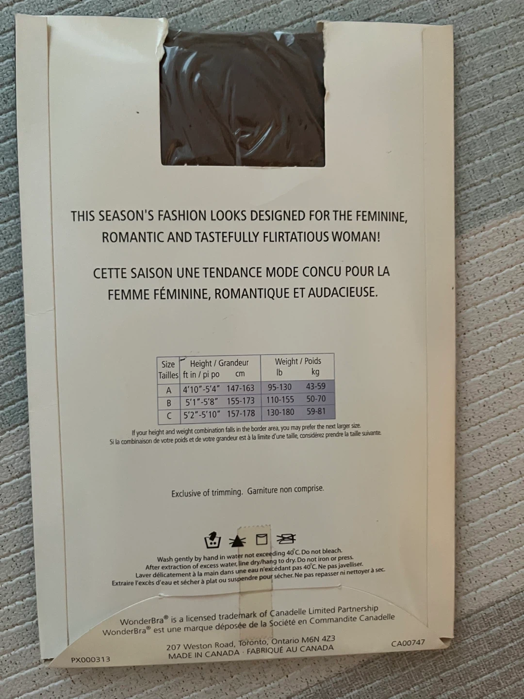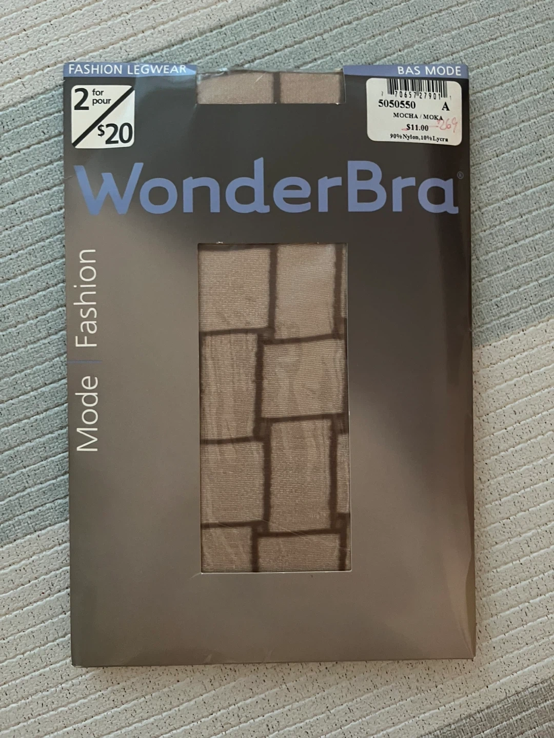 I also have WonderBra fashion legwear in mocha moka, size A, made of 89% nylon and 11% lycra