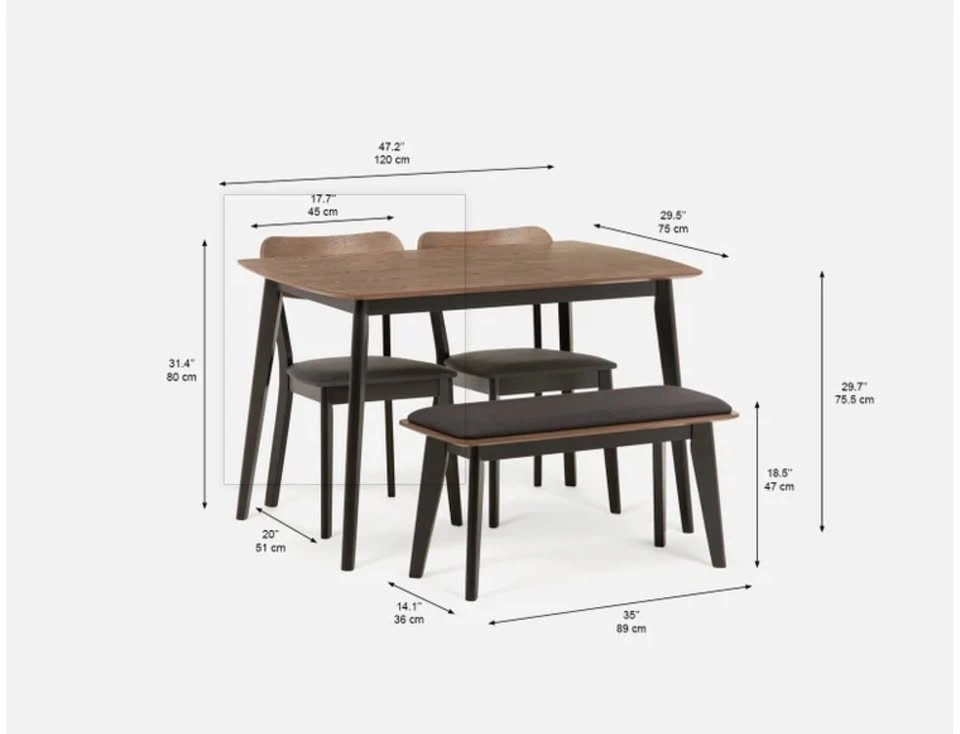 The Tropea four-piece dining set proves that with the right furniture, even a small space can become the heart of your home. This sleek bench-and-chair combo offers flexible seating, while the rectangular table is ready for everything from quick breakfasts to lively discussions. Keeping the vibe simple and social, it creates a warm, inviting nook that’s as versatile as your lifestyle.