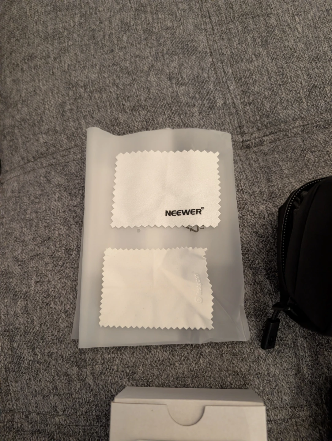 Also comes with couple of cleaning microfiber clothes and a set of Neewer ND filter set (4 ND filters)