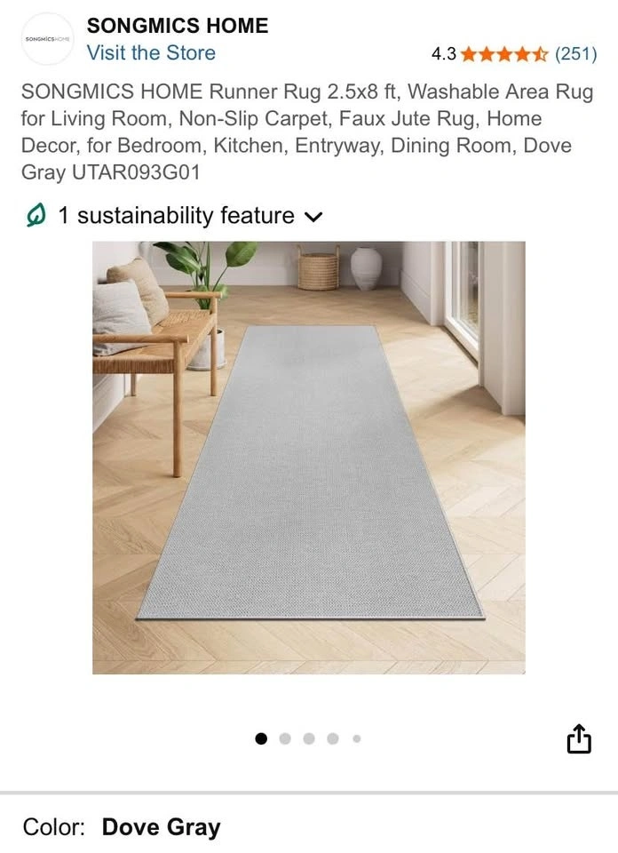 SONGMICS HOME Runner Rug – 2.5 x 8 ft. Perfect for hallways, bedrooms, kitchens & entryways.