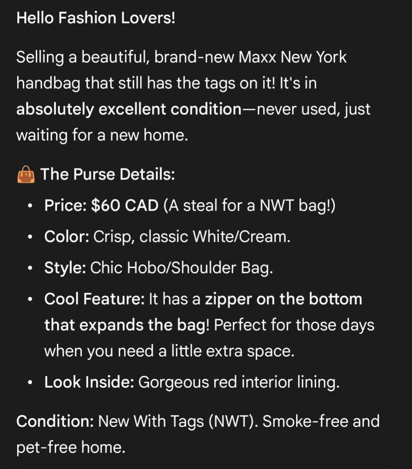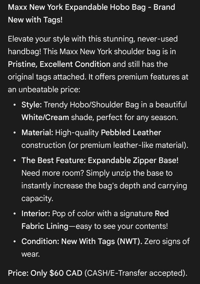 1 / 101 / 10Buy & SellMAXX NEW YORK Hobo/ shoulder bag.MAXX NEW YORK Hobo/ shoulder bag.$60NWT (New With Tags). MAXX NEW YORK Hobo bag Expandable bag with beautiful red interior. See pics for the full description.WHERE TO MEETCheck LocationView MapSELLERverifiedDarrenCentreville Chicopee600 reviews0 chats·0 favorites·4 viewsSEND CHAT TO SELLERHi Darren! I’m interested in your listing.Hi Darren! I’m interested in your listing.Get the Karrot app to chatSign In to chat