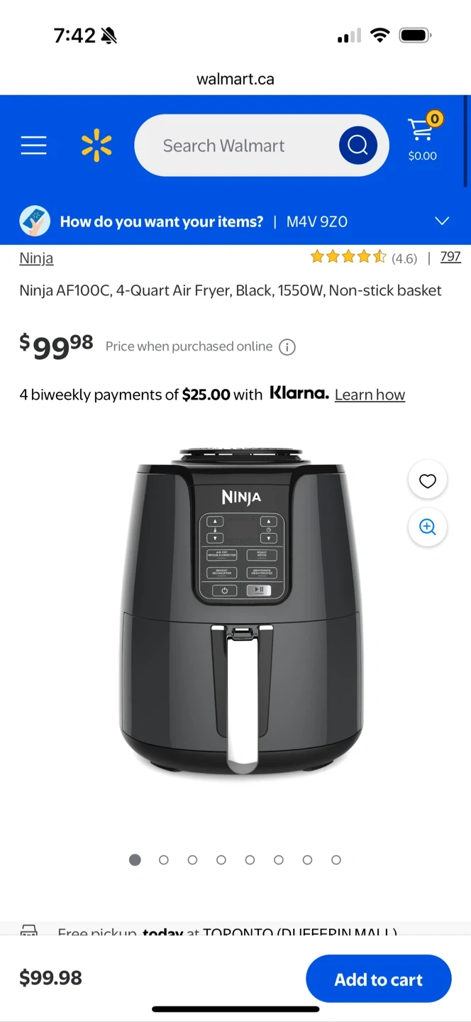 I'm selling a Ninja AF100C 4-Quart Air Fryer in black. It features a non-stick basket and 1550W power. Originally bought for $99.98!