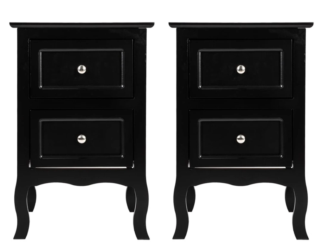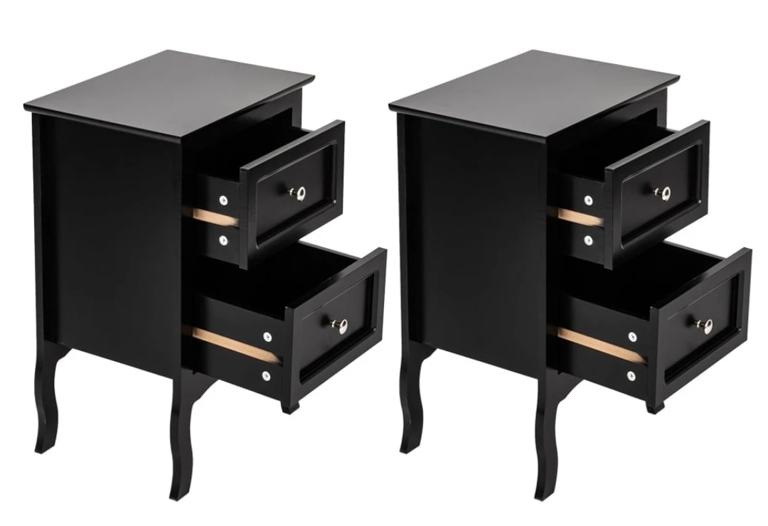 Black 2-Drawer Nightstand Set of 2