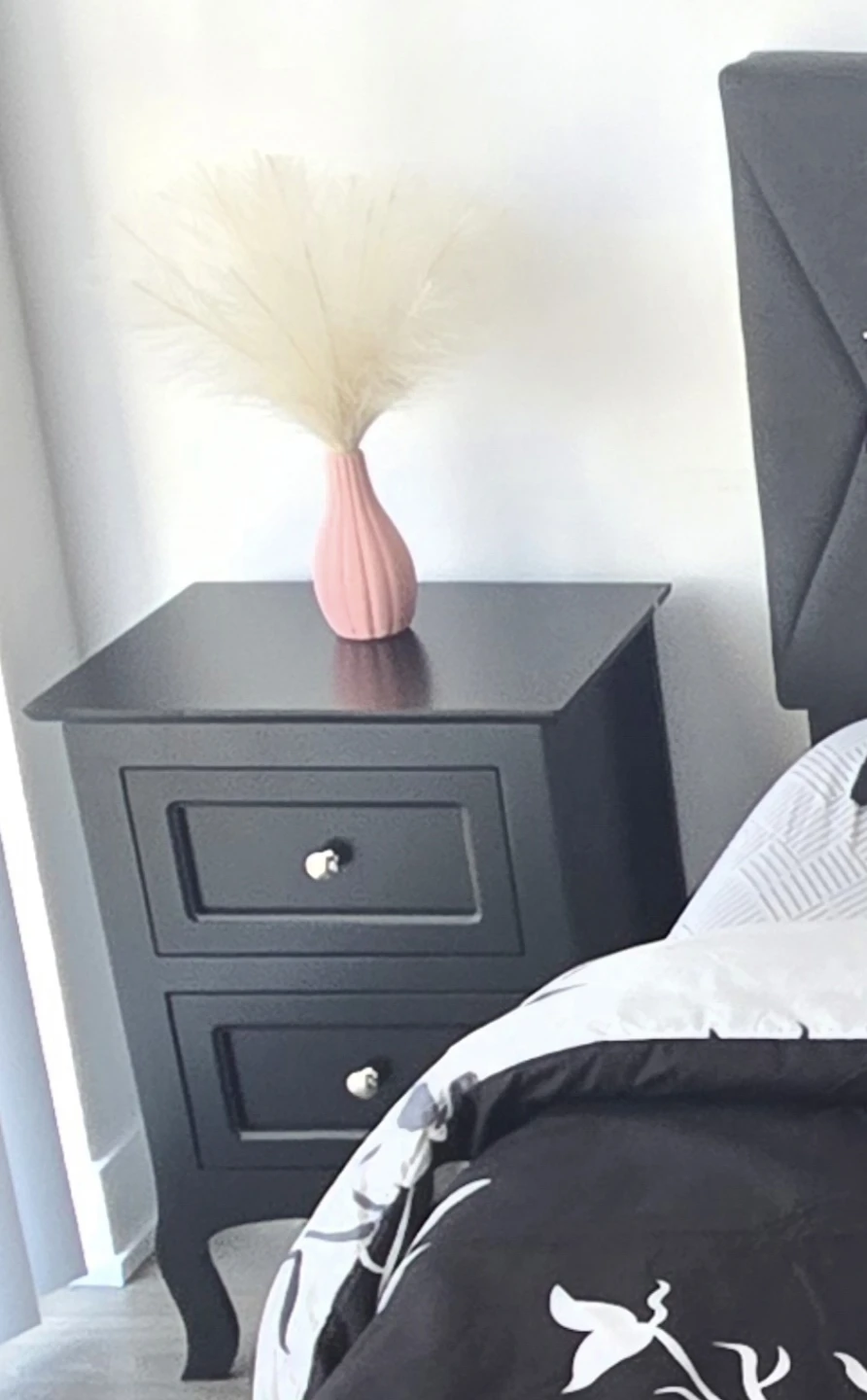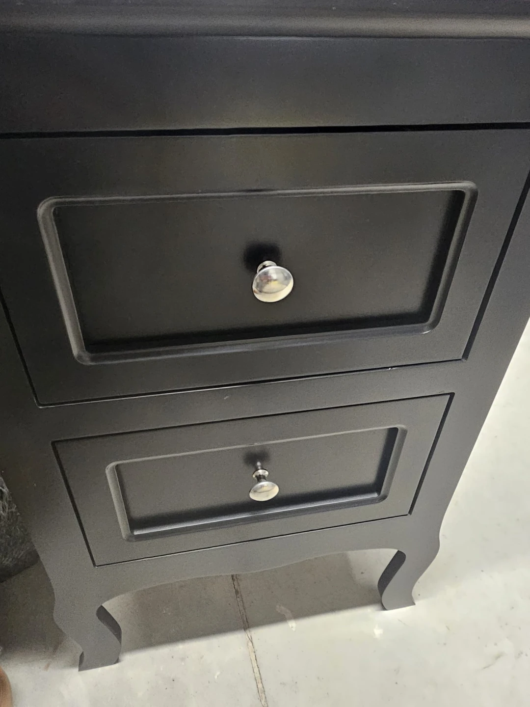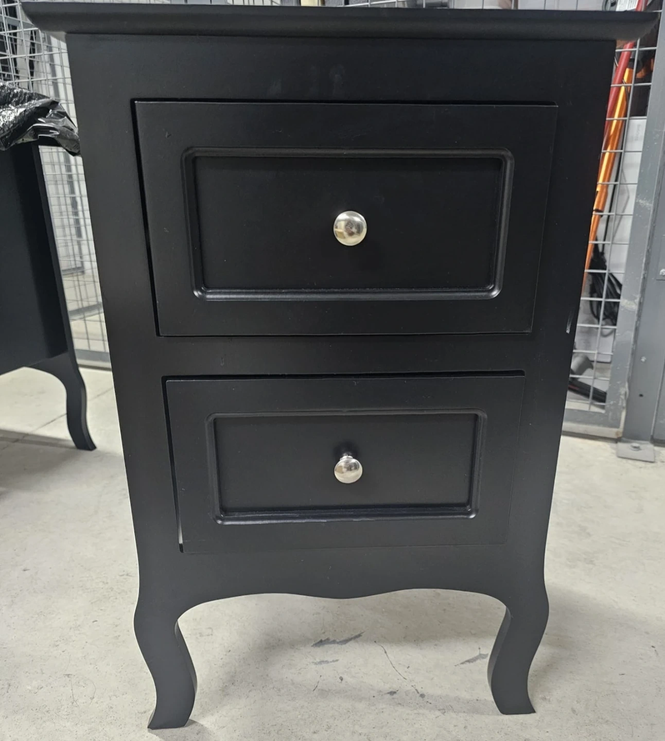Selling a set of 2 black nightstands with two drawers. They're in great shape (minor scratches) and would look lovely in any bedroom. Never used, only assembled. The drawers provide handy storage, and the classic design blends with any decor.