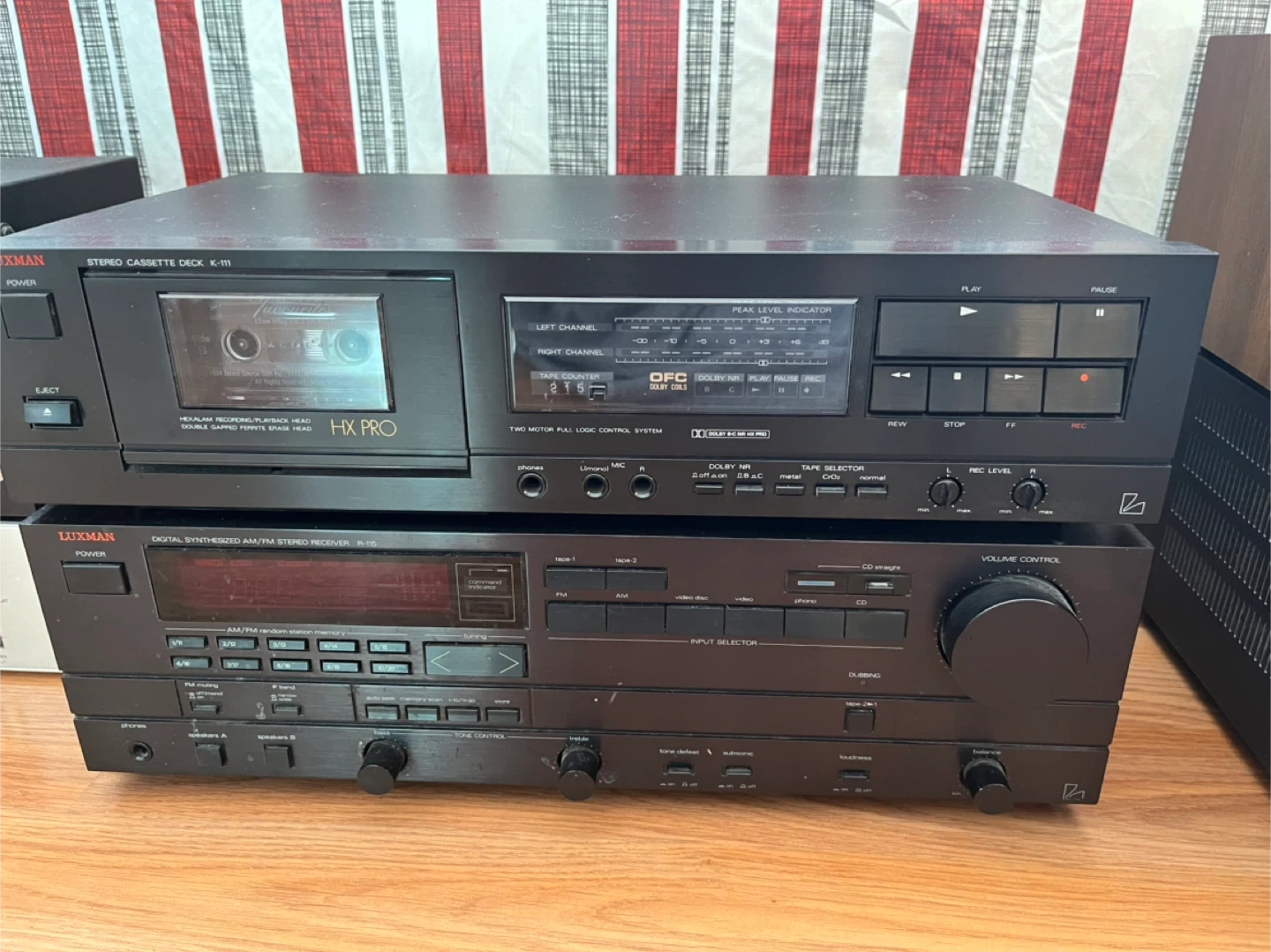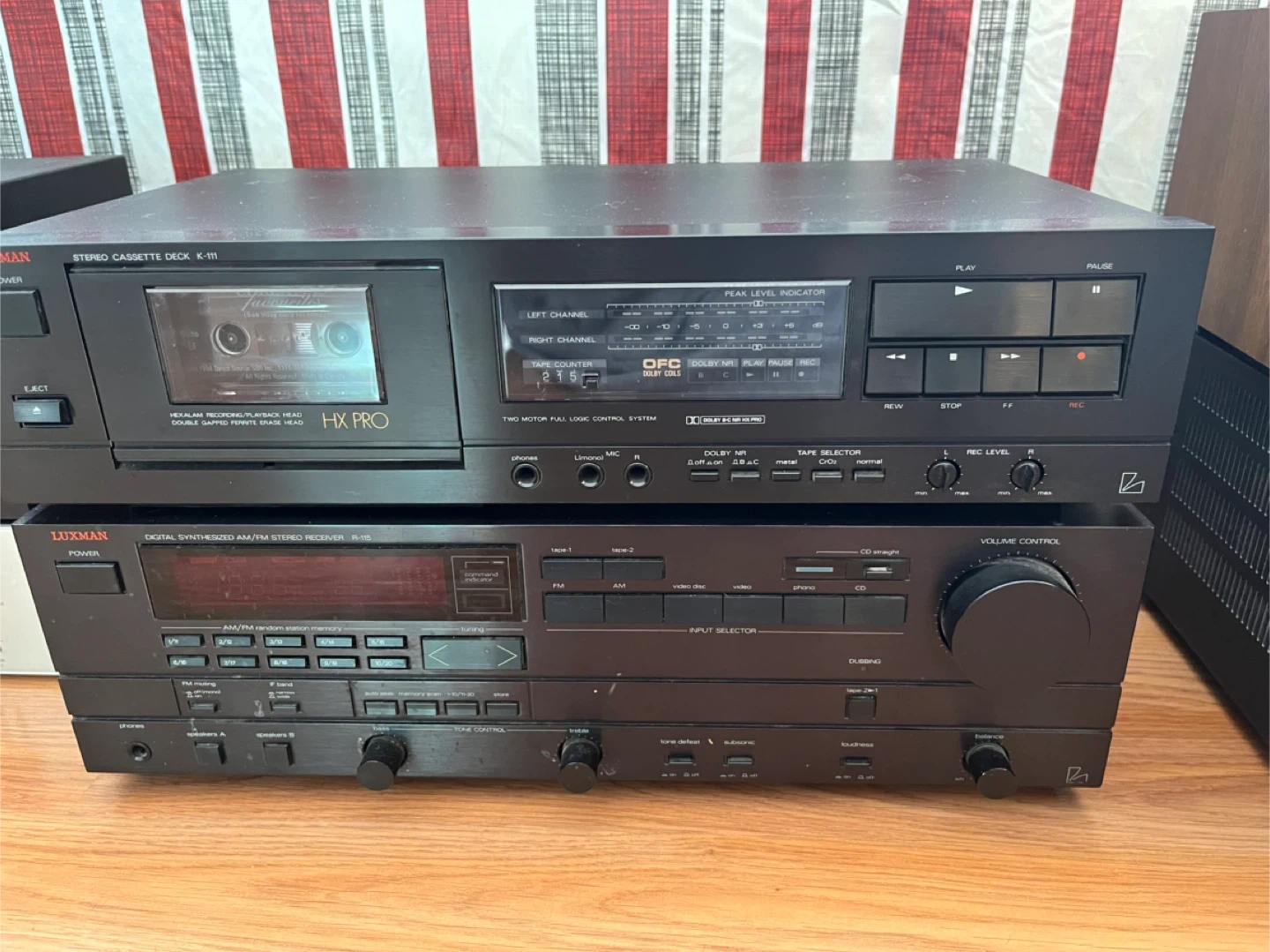 Selling a Luxman stereo cassette deck K-111 and a digital synthesized AM/FM stereo receiver R-115. They are in good working condition and ready to be enjoyed!