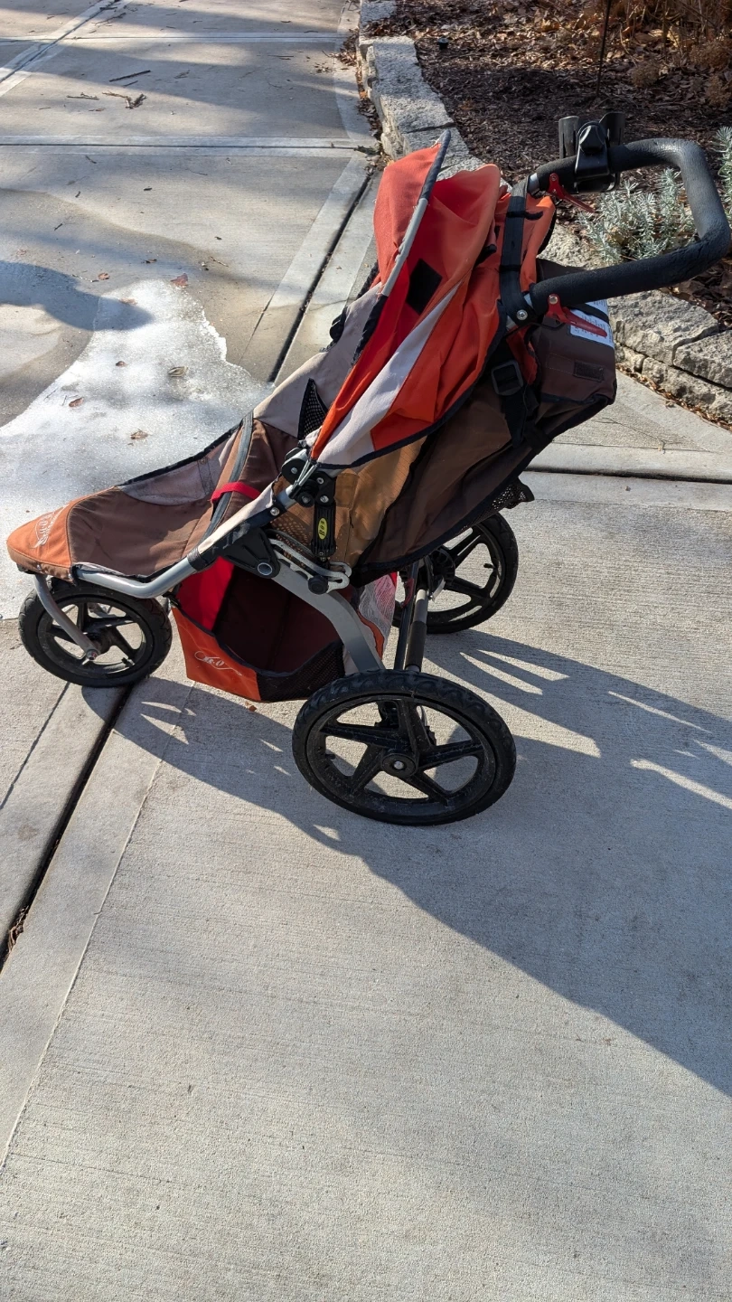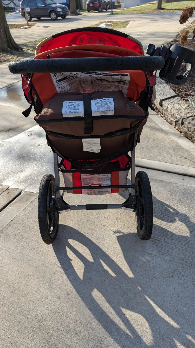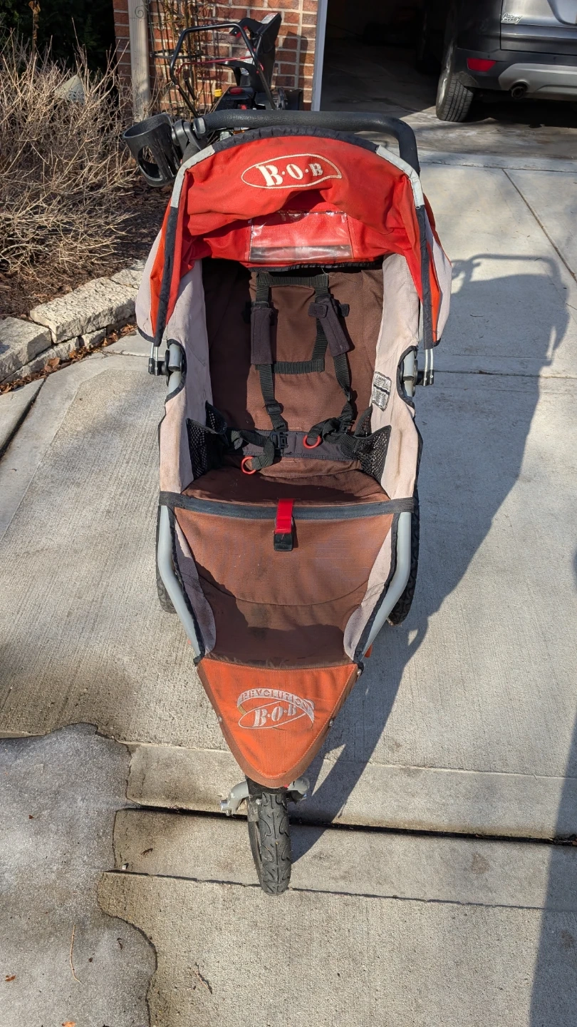 Selling a BOB Revolution stroller! It's in decent condition and ready for new adventures. Perfect for jogging or everyday use, this stroller is durable and easy to maneuver. It features a smooth ride and plenty of storage for all your essentials. The tires need air.