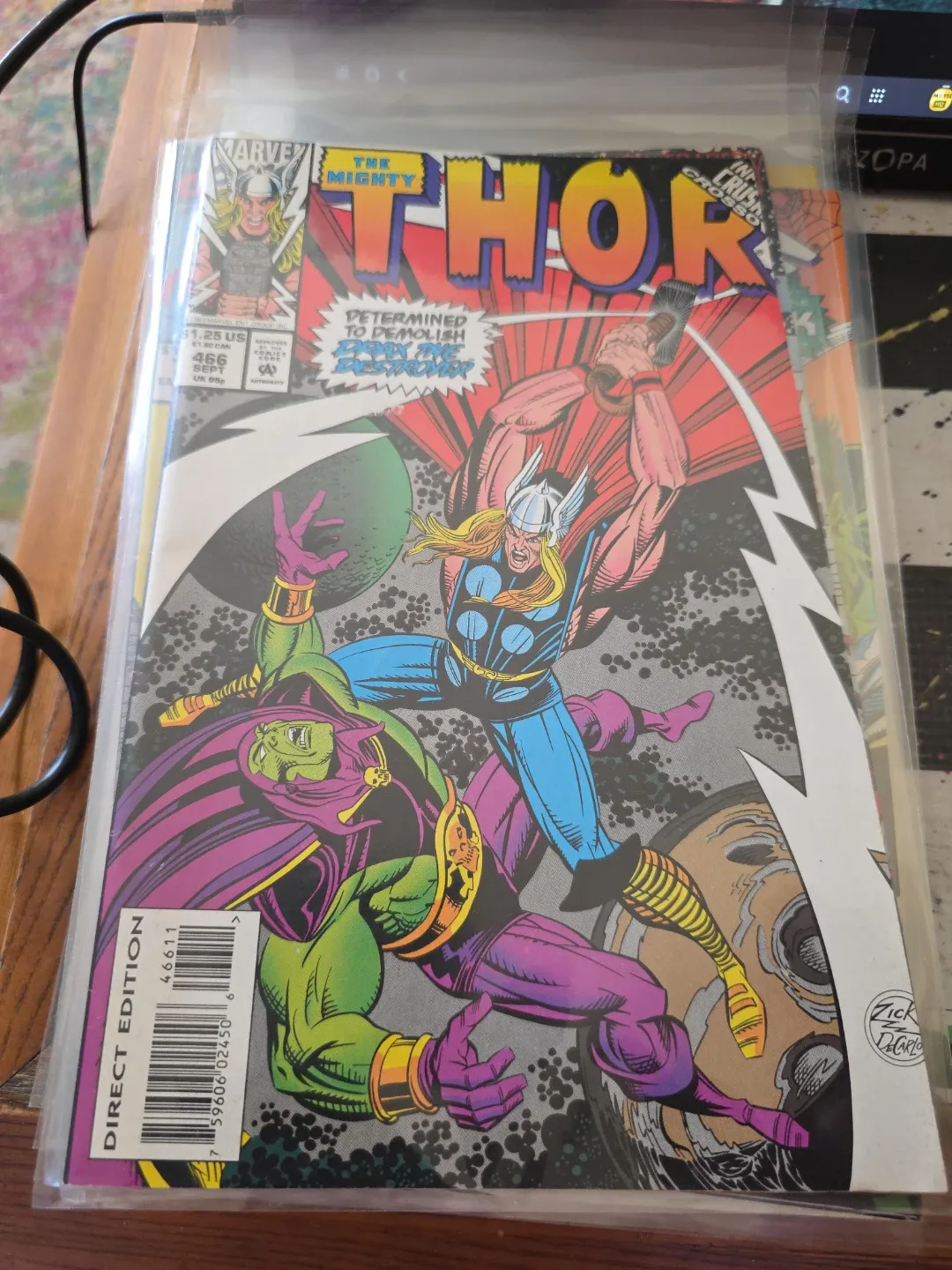 Selling a copy of The Mighty Thor #466 comic book from Marvel! It's a direct edition and features some awesome crossover action. A great addition for any comic book collector!