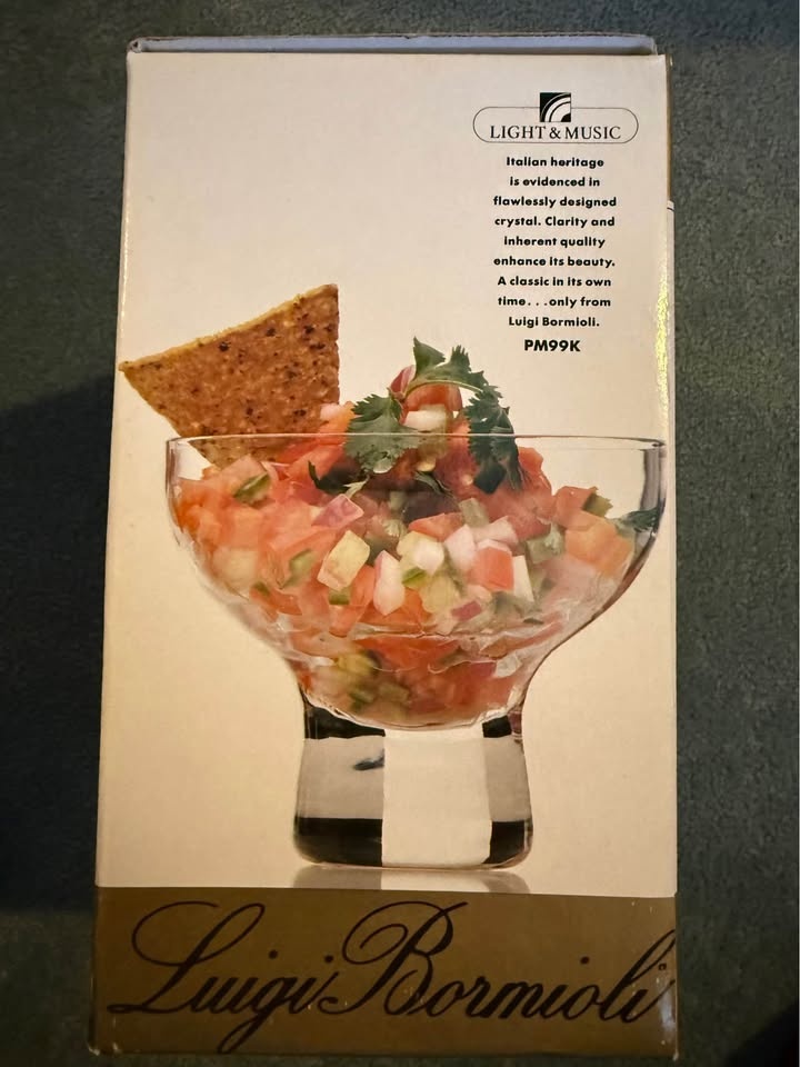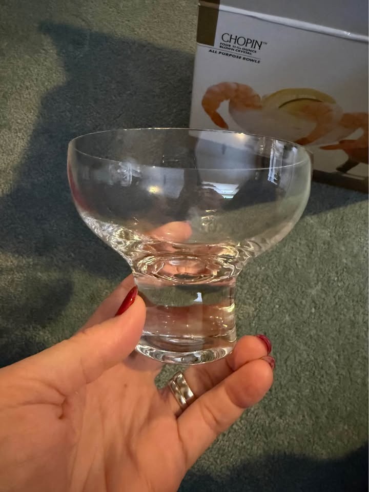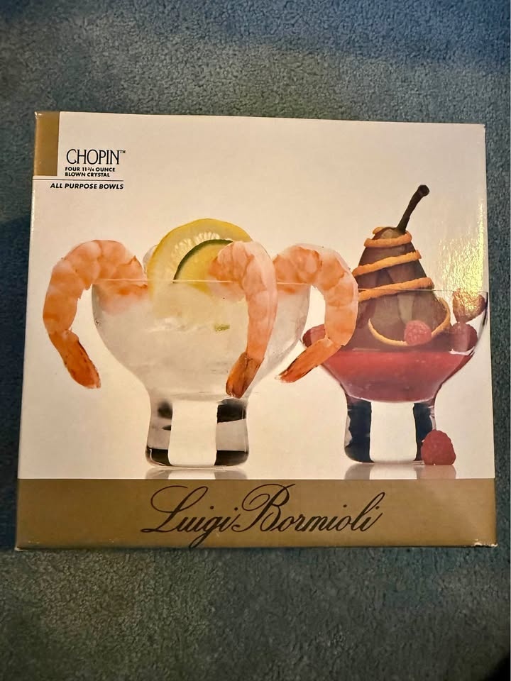 Luigi Bormioli Chopin blown crystal all-purpose bowls. Blown crystal glass. All-purpose bowls, suitable for desserts or appetizers. Crafted in Italy. Model number PM99K.