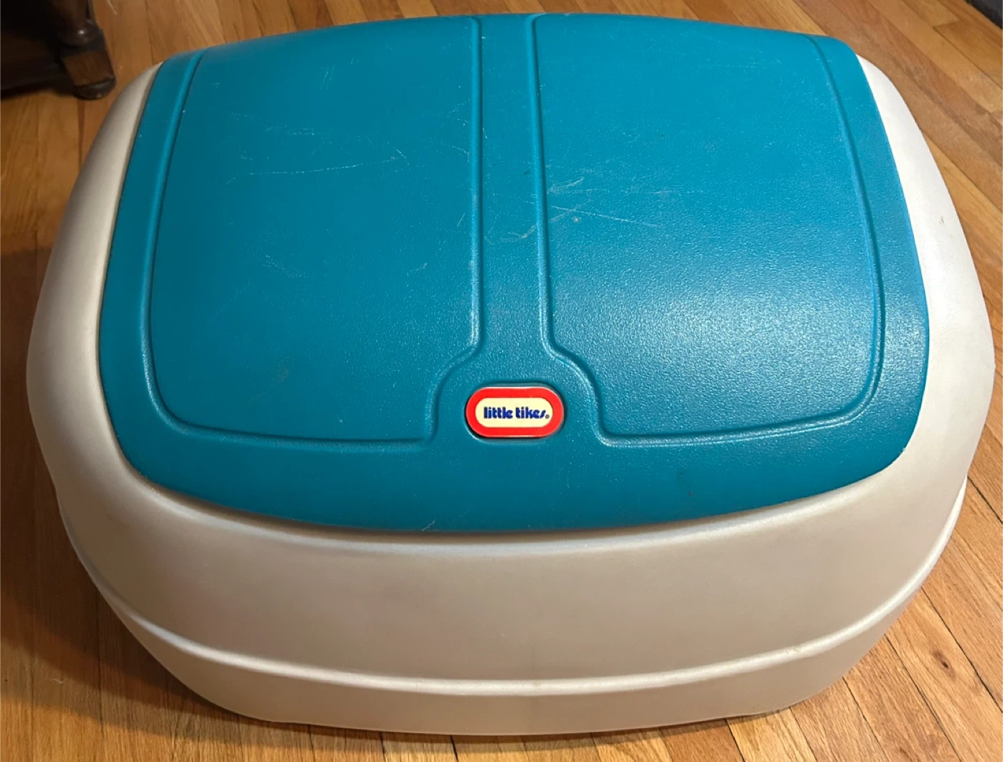 Selling a used Little Tikes toy chest! It's in good condition and ready to store lots of toys. The chest is a nice blue and white color and has a sturdy design. Perfect for keeping your little one's play area tidy!(does not include the toys inside)