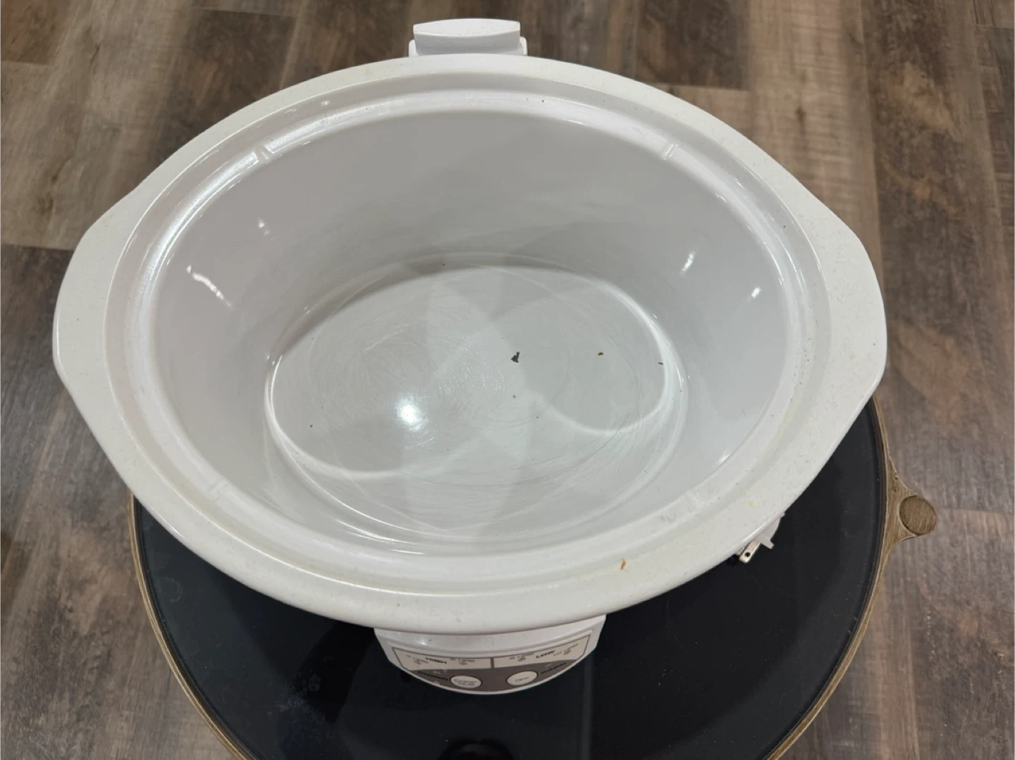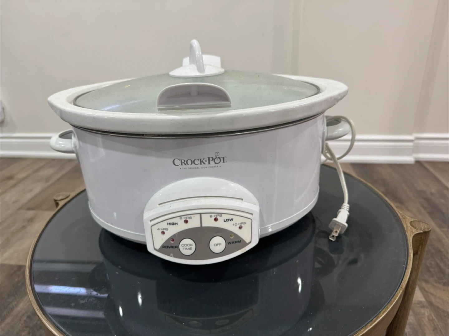 Selling a Crock-Pot slow cooker! It's white and has a glass lid. It has settings for low, high, and warm. Perfect for making soups, stews, and more!